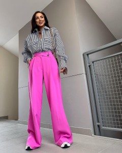 Spodnie eleganckie z PASKIEM WIDE LEG LA MILLA Barbie