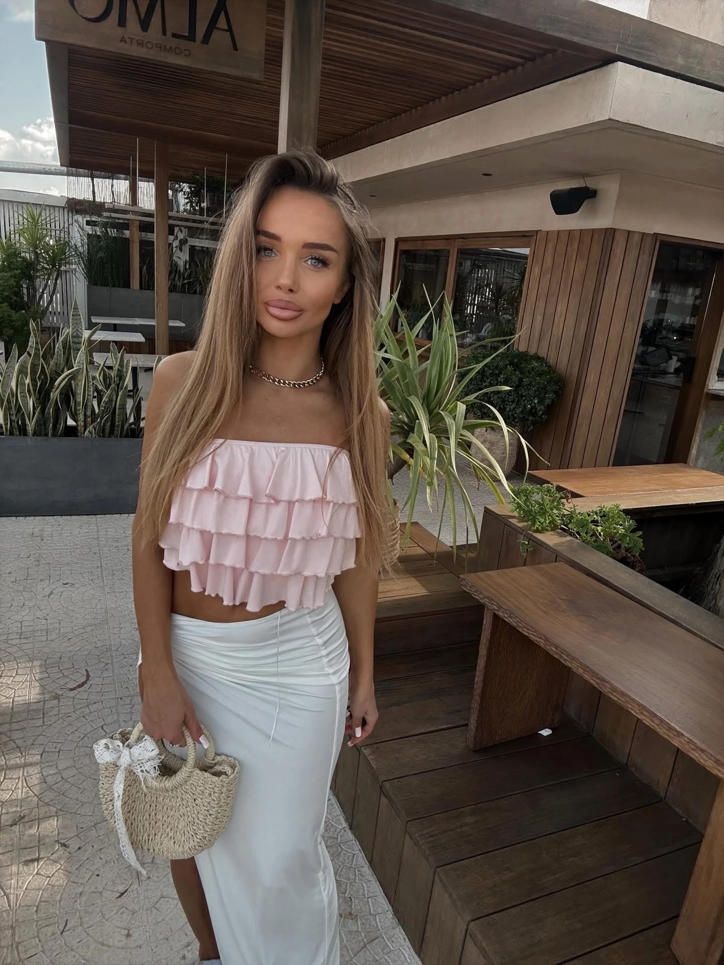 Bluzka Hiszpanka z falbankami Jasny róż