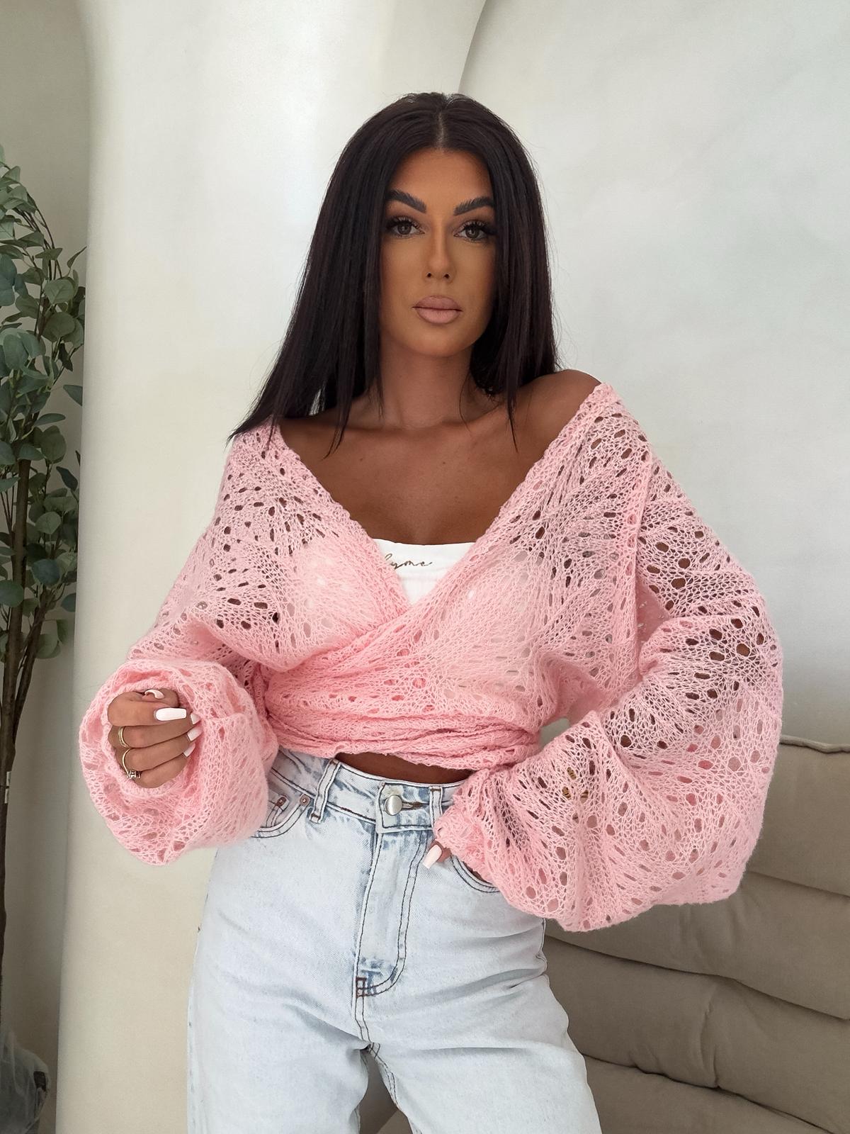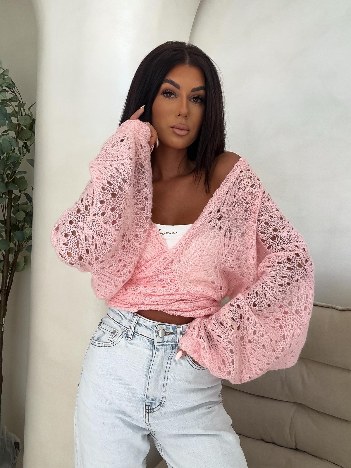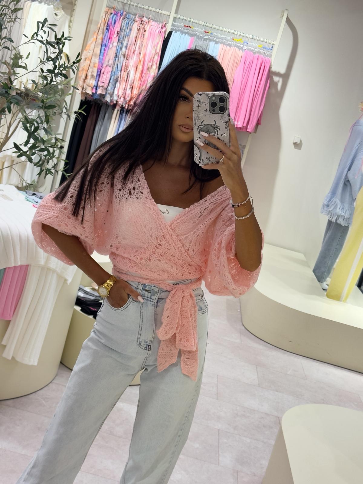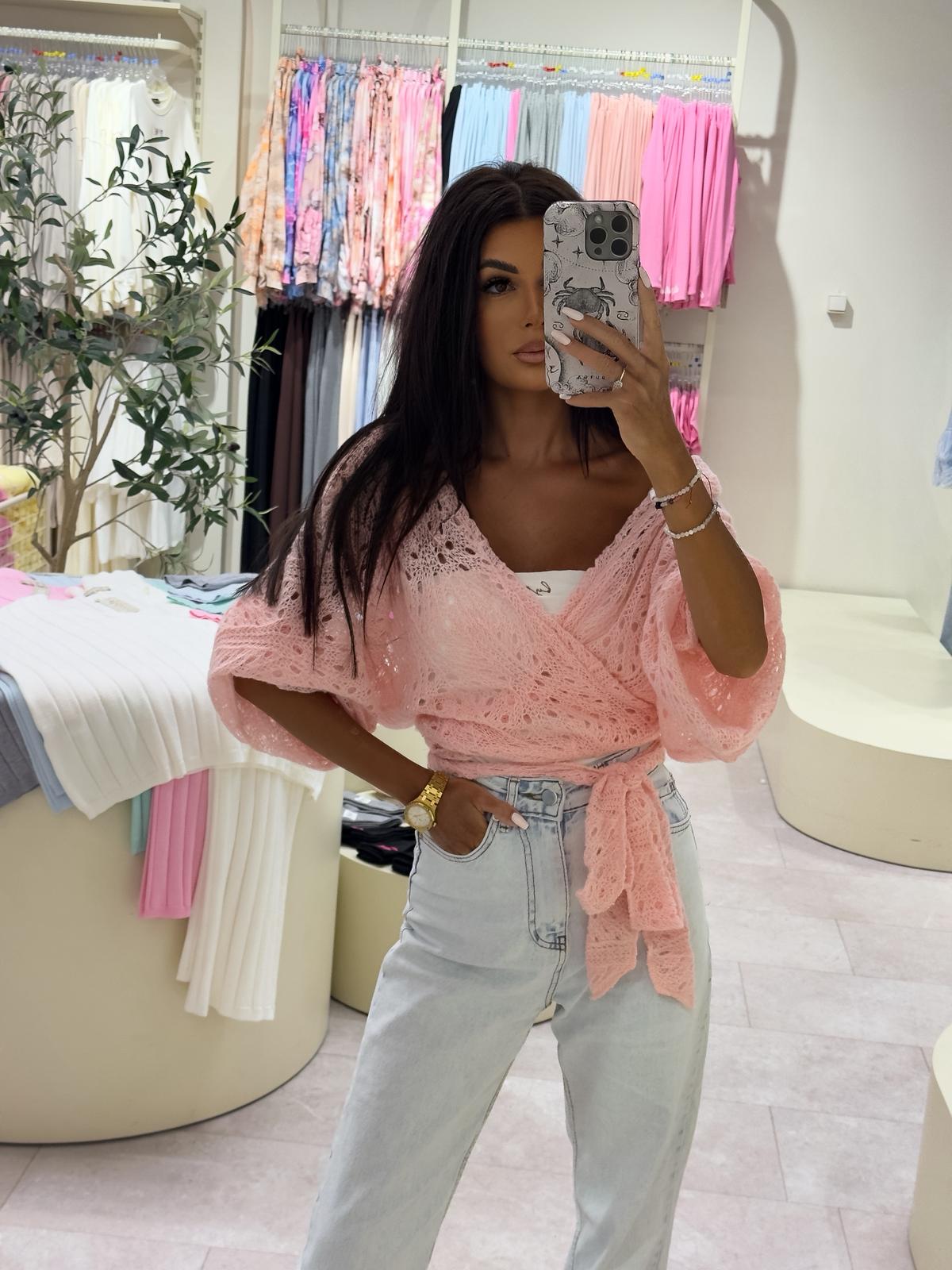 Ażurowe kimono to stylowy i lekki element garderoby, który łączy w sobie elegancję z komfortem. Wykonane z przewiewnego materiału, posiada subtelną ażurową strukturę, która nadaje mu unikalnego charakteru. Kimono jest przewiązywane, co pozwala na dopasowanie go do sylwetki oraz dodaje mu swobody w stylizacji. Można go nosić zarówno z przodu, jak i z tyłu, co daje szerokie możliwości noszenia i dostosowania do różnych stylizacji. Idealne do noszenia na co dzień lub na bardziej formalne okazje.