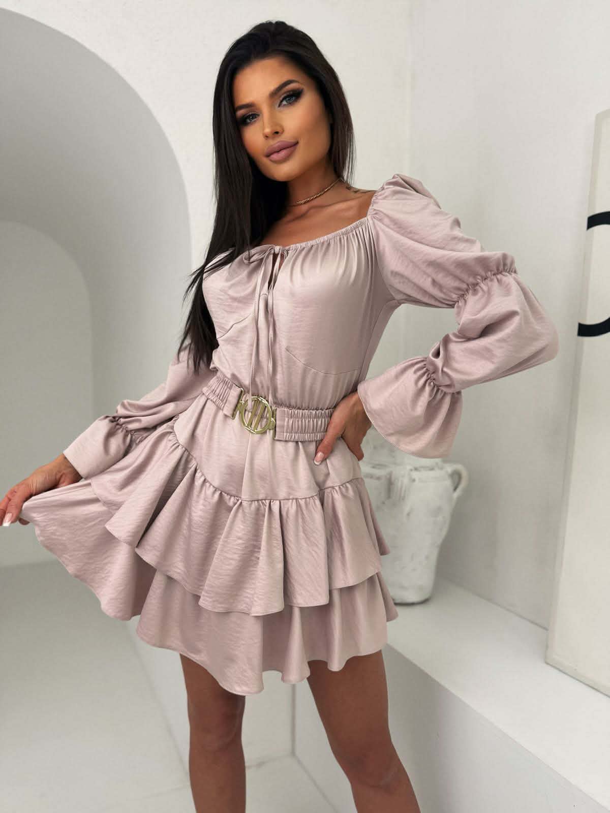 Elegancki kombinezon wykonany z delikatnego, satynowego materiału, który pięknie układa się na sylwetce i subtelnie podkreśla jej atuty.