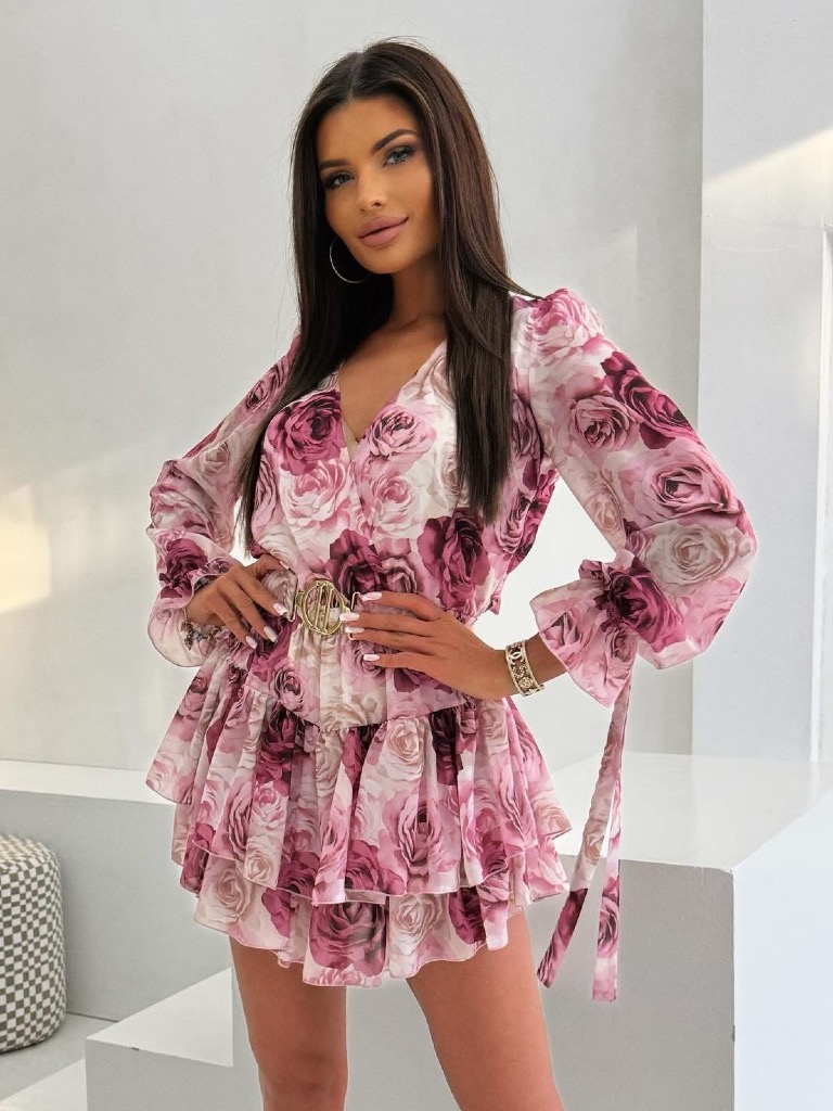 Nasz bestseller – szyfonowy kombinezon z falbankami wykonany z lekkiego, delikatnego materiału. Dekolt w literke V Modny print i przepiękna kolorystyka. Kombinezon posiada gumkę w pasie. Idealny na specjalne wyjścia jak i na co dzień. Posiada podszewkę.
