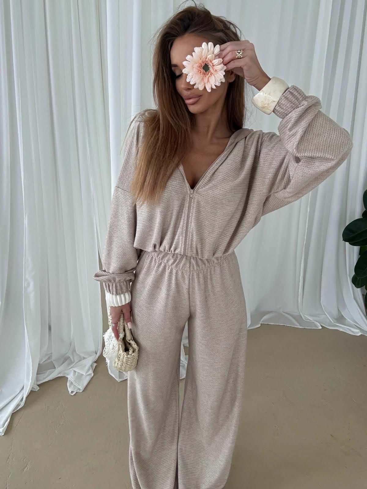 Komplet Bluza z kapturem i spodnie BEŻOWY AGATHA