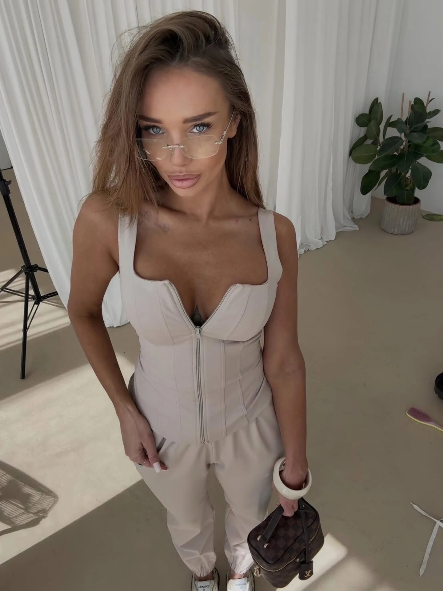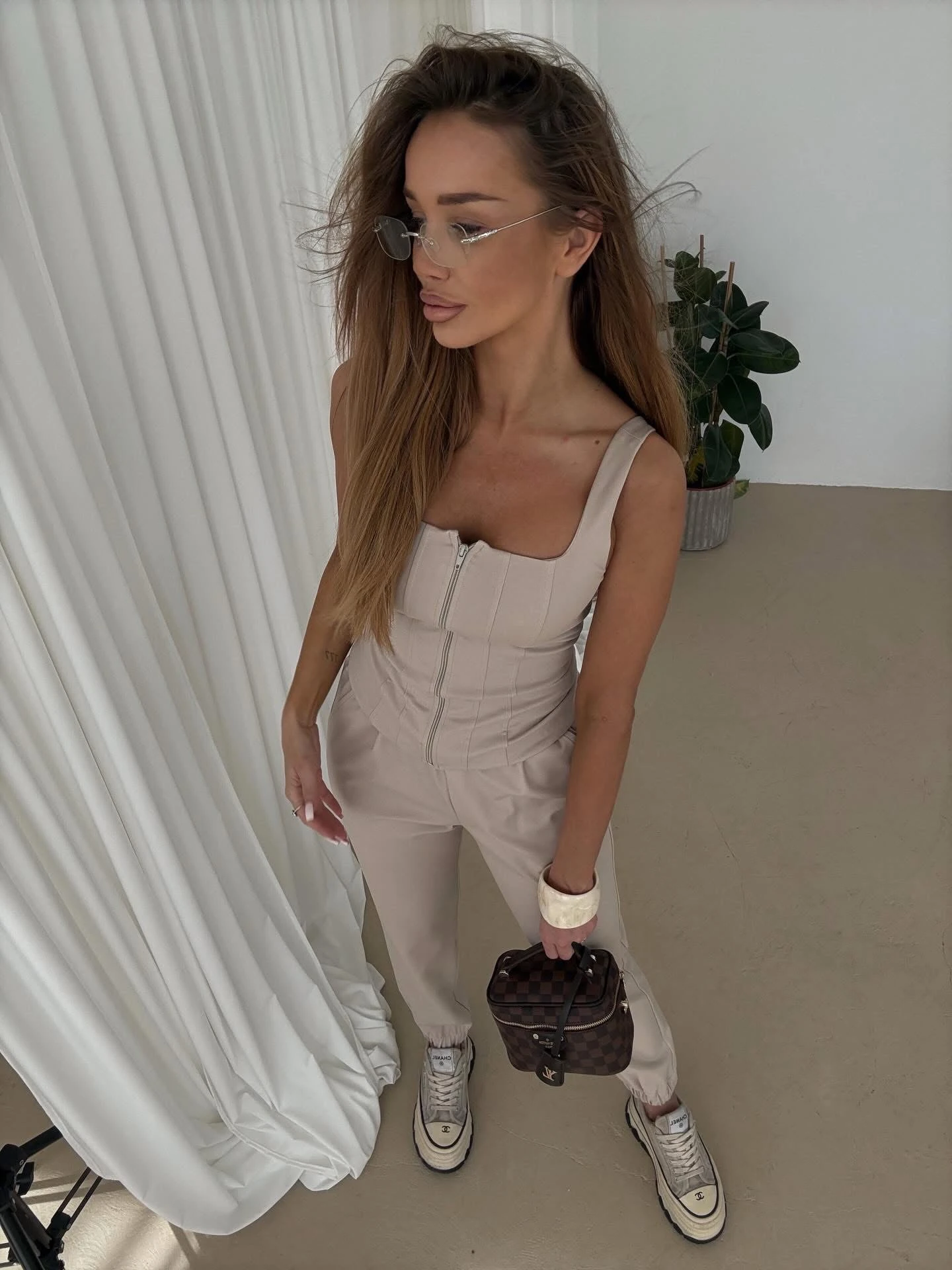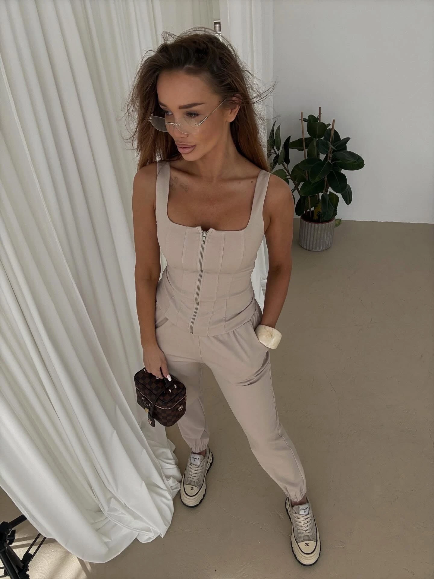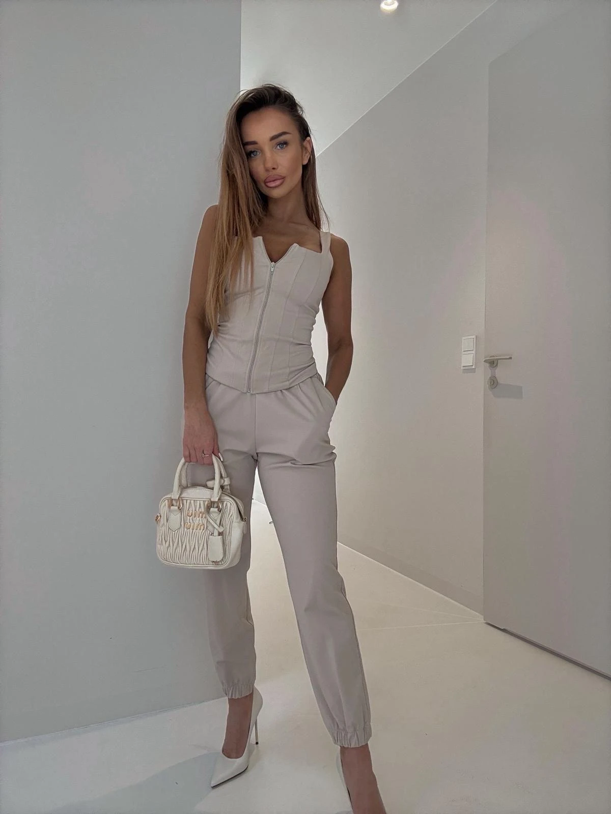 Komplet Bonno Top + Spodnie Beż