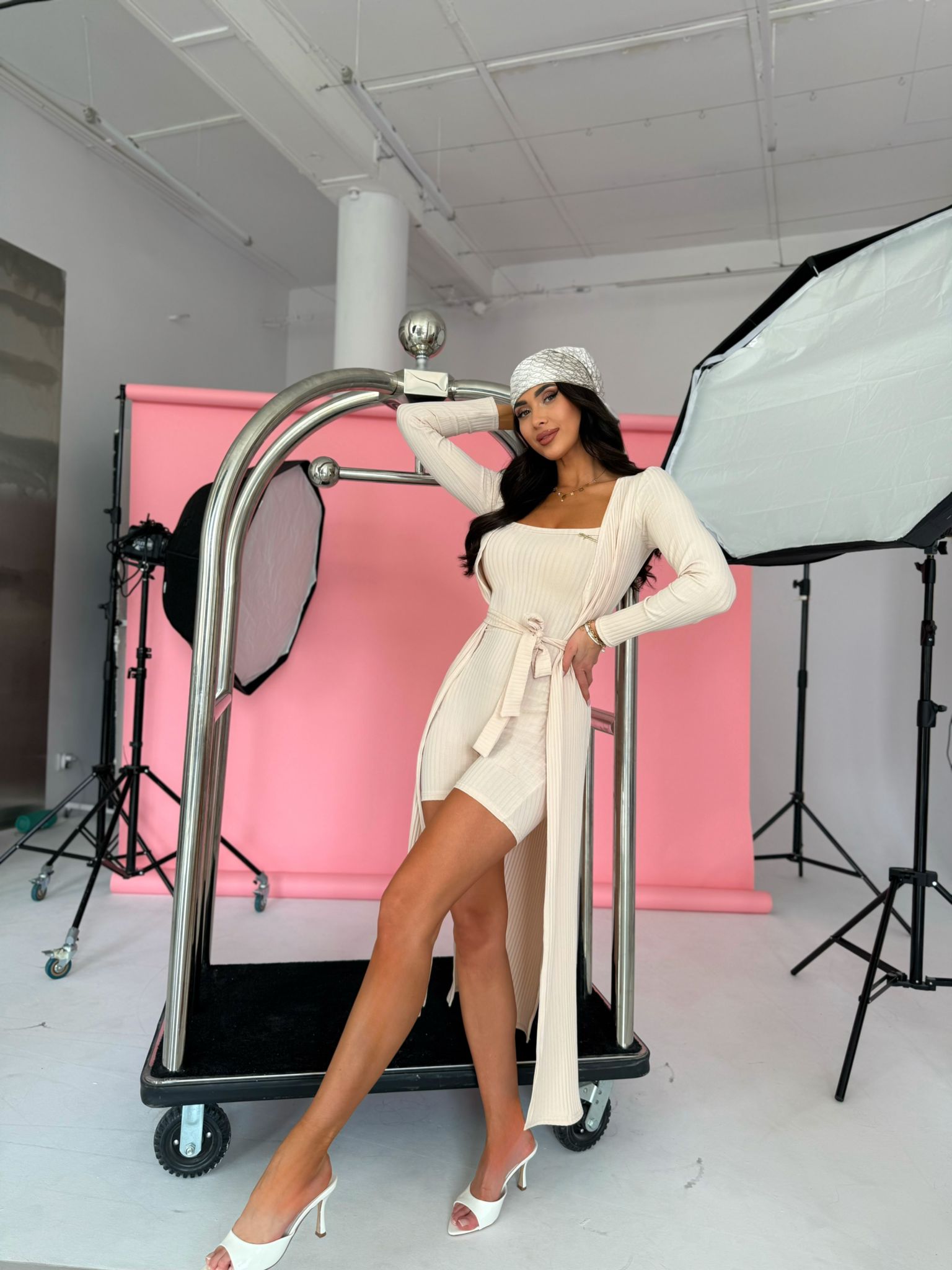 Komplet California to stylowa propozycja dla kobiet ceniących modny wygląd i wygodę. Zestaw składa się z dopasowanego kombinezonu na ramiączkach oraz lekkiej narzutki z paskiem, które razem tworzą efektowną i kobiecą stylizację. Prążkowany materiał pięknie dopasowuje się do sylwetki, podkreślając jej atuty i zapewniając komfort noszenia przez cały dzień.