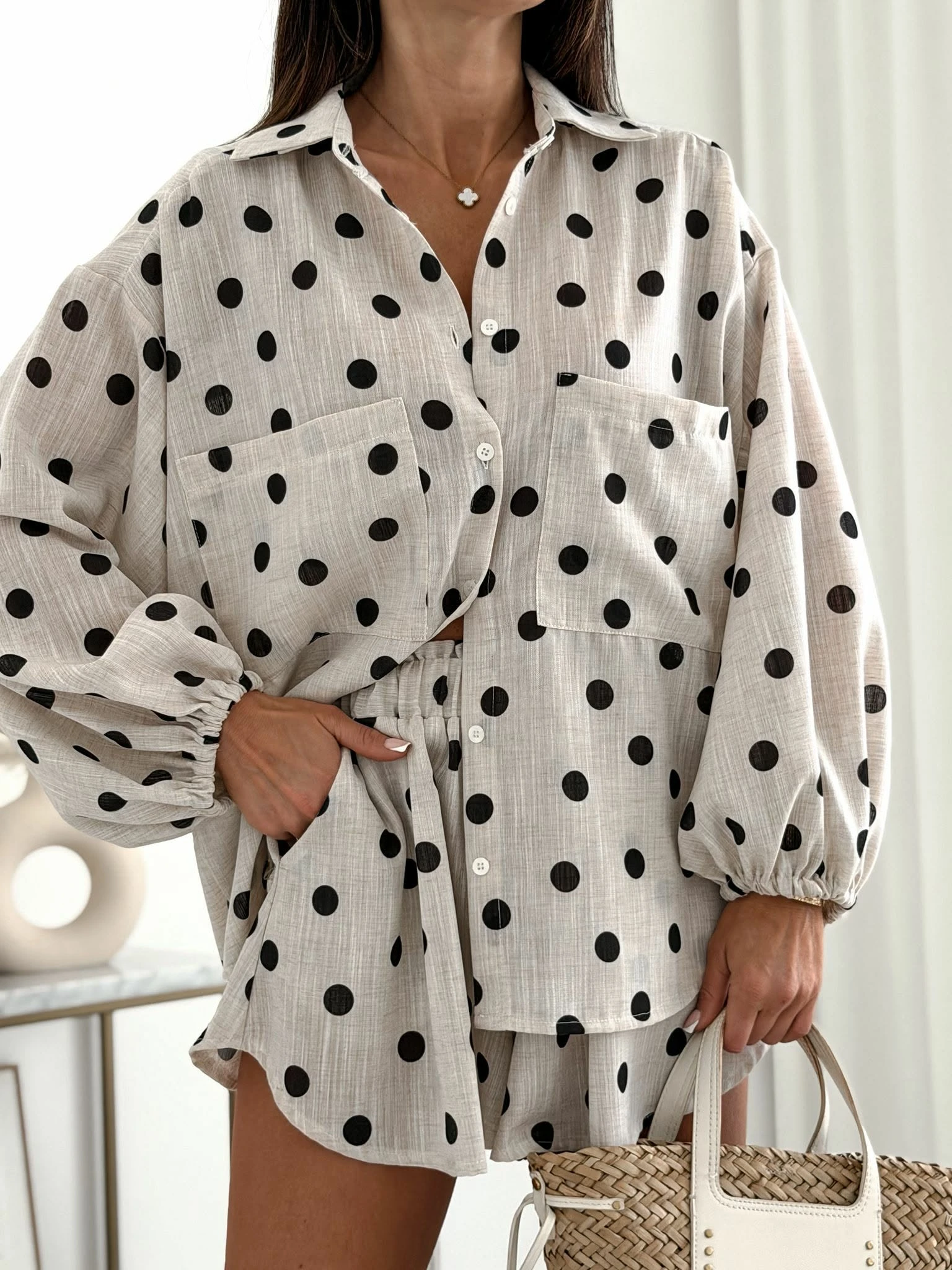 Komplet Cotton Wram + szorty Beż Grochy
