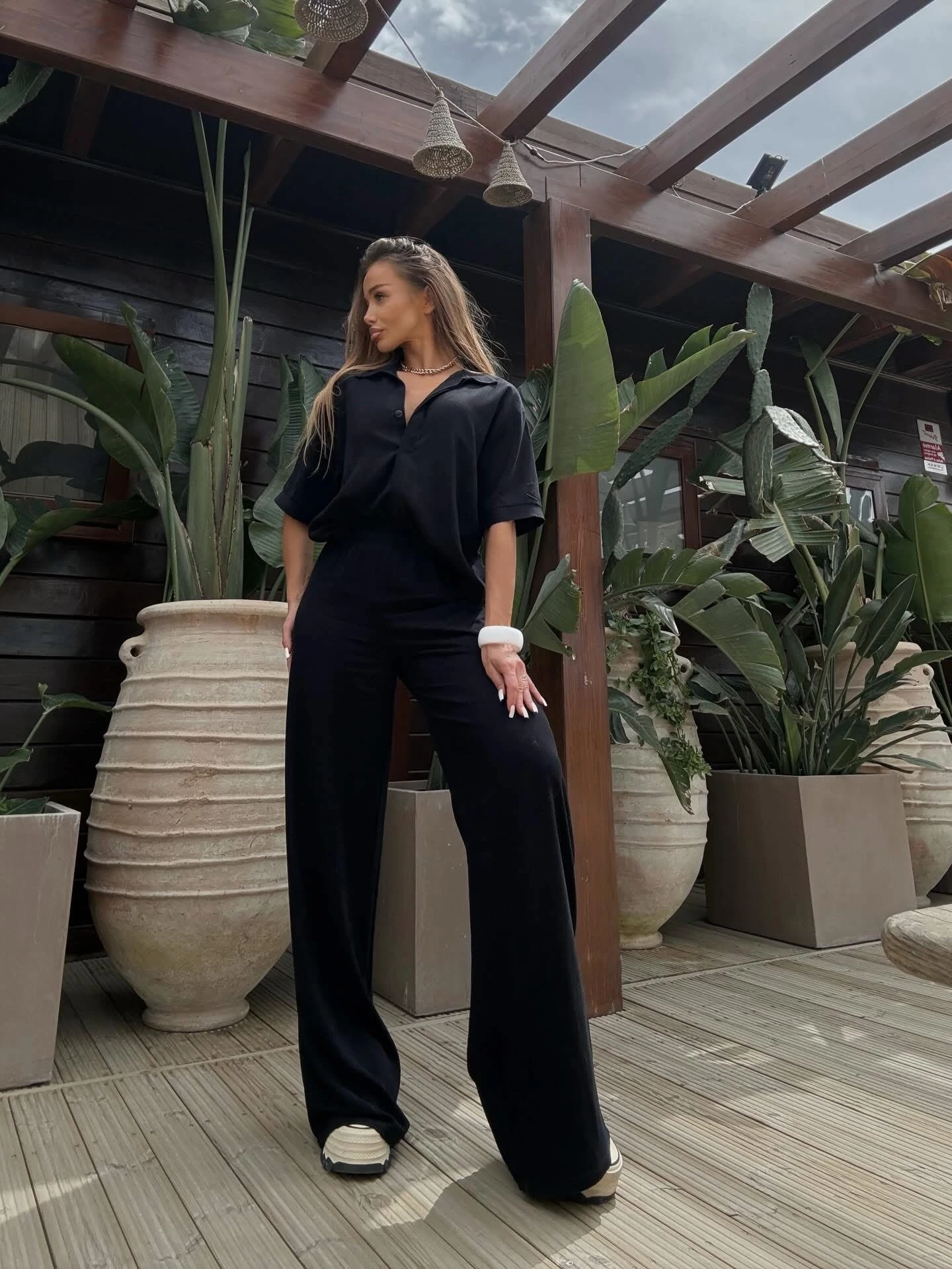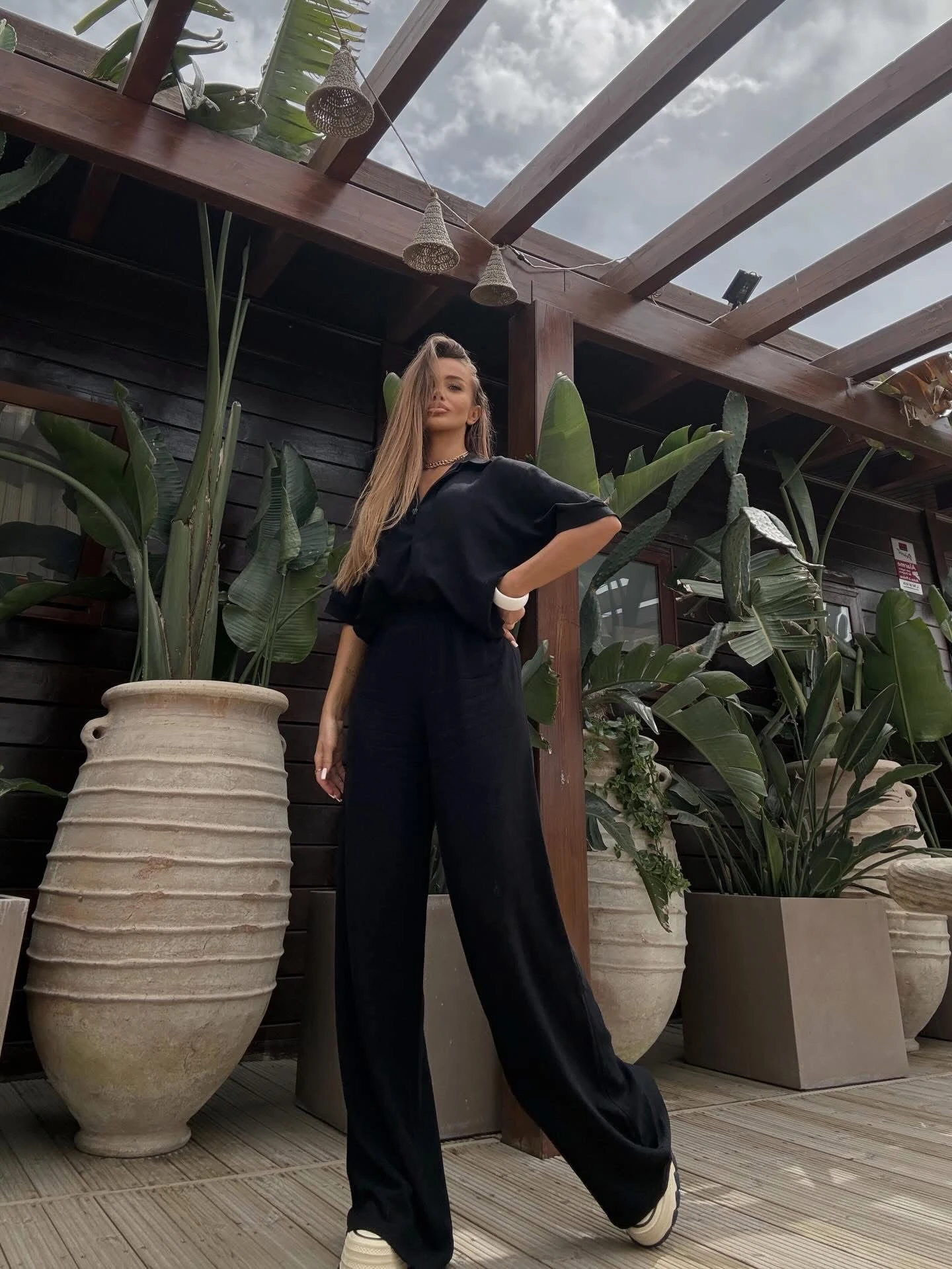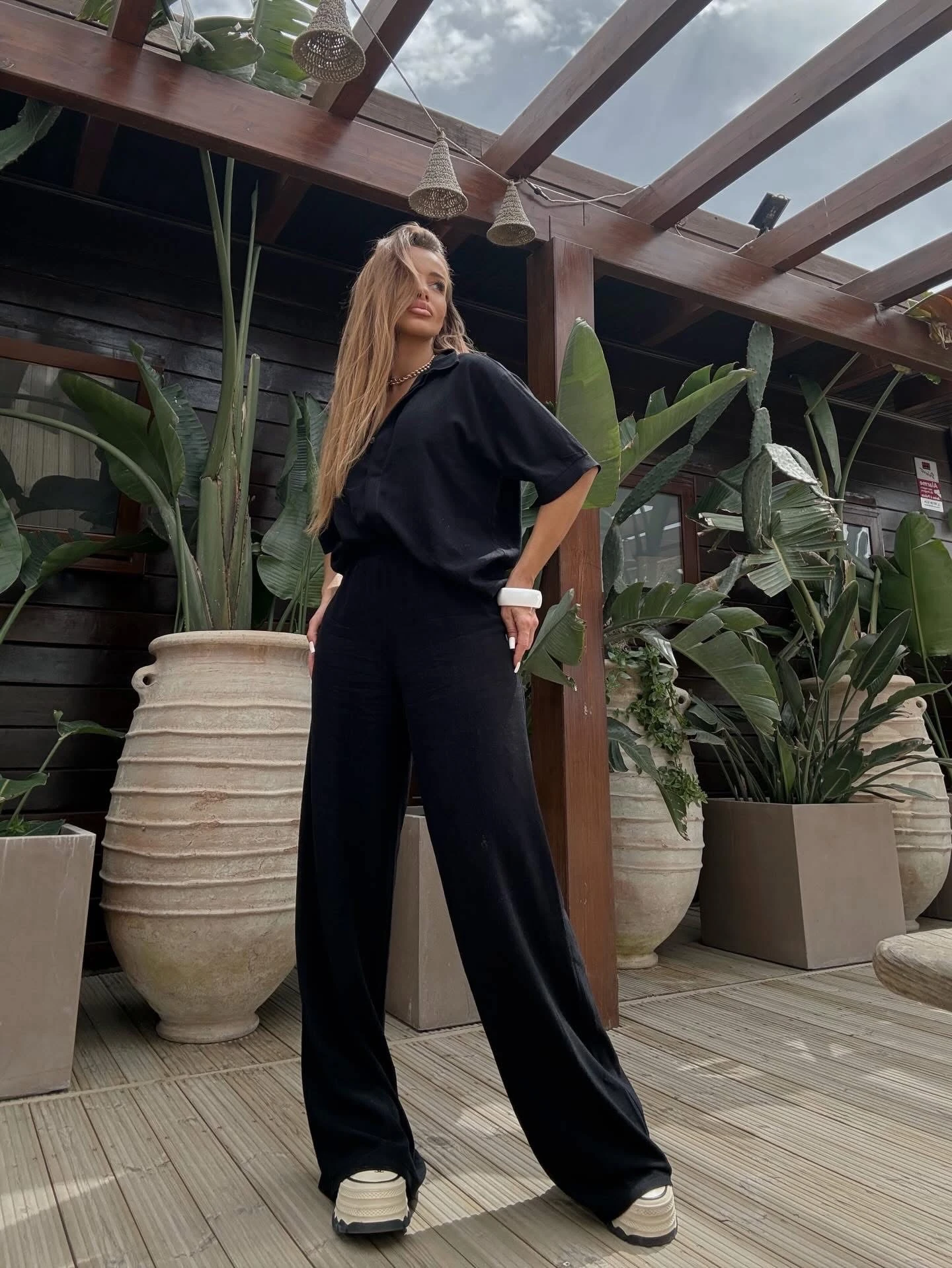 Komplet Lniany Czarny Amelo