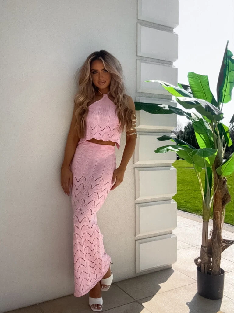 Komplet składający się z topu wiązanego na szyi i na plecach oraz spódnicy maxi z gumką w pasie to elegancka i jednocześnie komfortowa propozycja na letnie dni. Top wiązany na szyi i plecach dodaje lekkości i swobody, zapewniając idealne dopasowanie do sylwetki. Dzięki wiązaniu na plecach i szyi, można dostosować go do swoich preferencji, uzyskując perfekcyjny wygląd. Spódnica maxi z gumką w pasie jest nie tylko wygodna, ale i stylowa – jej luźny krój podkreśla kobiecą figurę, jednocześnie zapewniając komfort noszenia przez cały dzień. To połączenie, które idealnie sprawdzi się zarówno na wakacyjne wyjazdy, jak i na codzienne, letnie stylizacje.