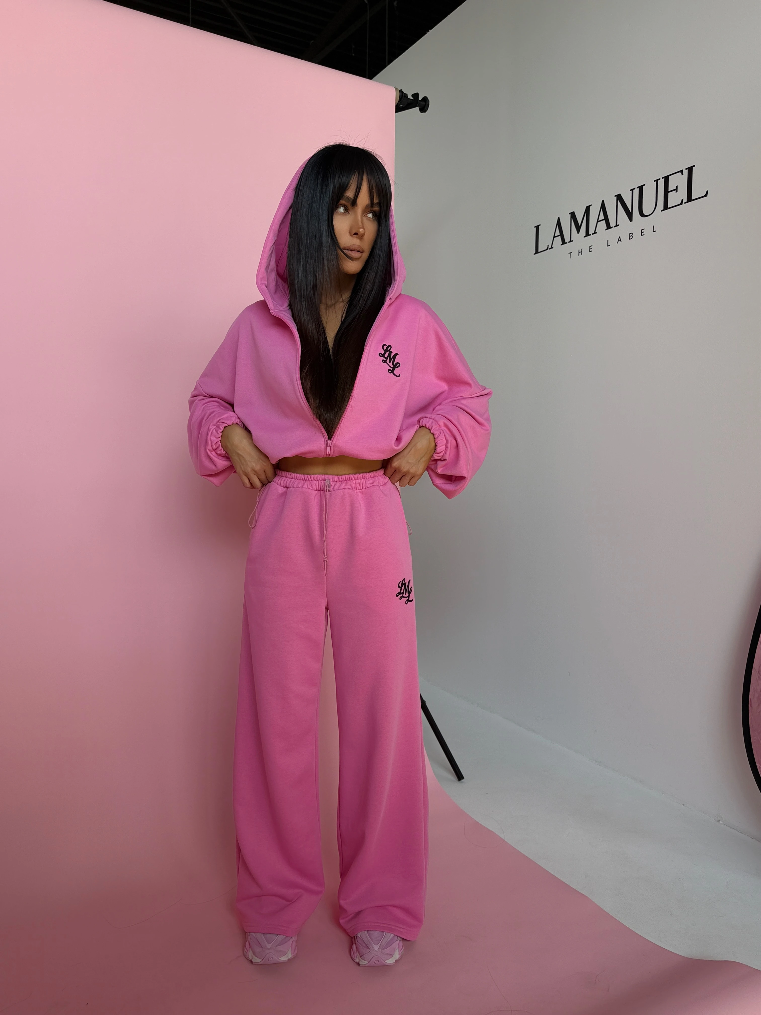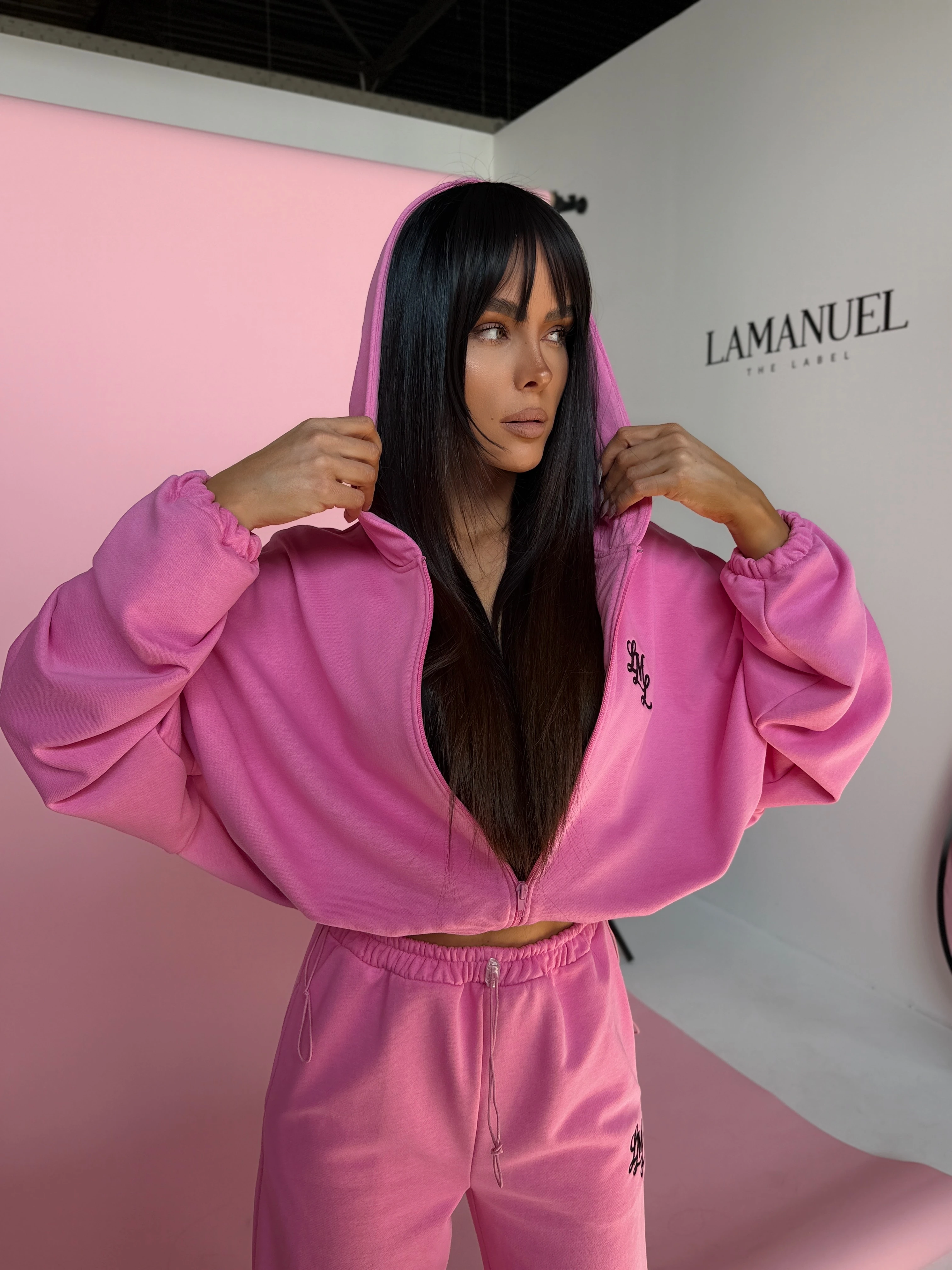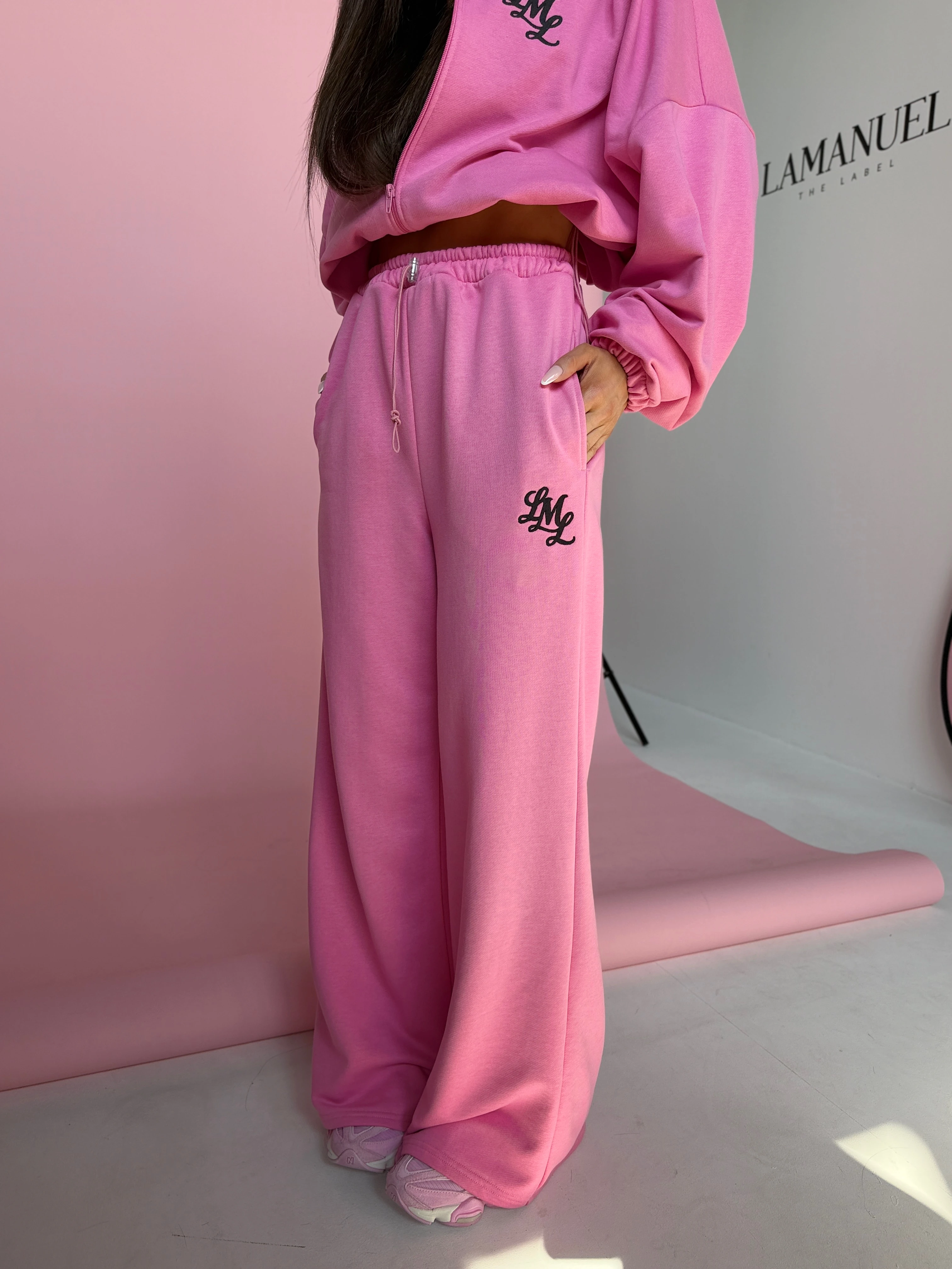 Komplet dresowy o luźnym, oversize’owym kroju. Bluza z kapturem zapinana na zamek, z obniżoną linią ramion i regulacją dołu, która pozwala dopasować fason. Spodnie z szeroką nogawką, gumą w pasie i swobodnym krojem, który dobrze układa się na sylwetce. Na przodzie subtelne haftowane logo, na plecach duży, wyrazisty nadruk. Model tworzy spójny, nowoczesny look idealny do codziennych stylizacji i kompletów.