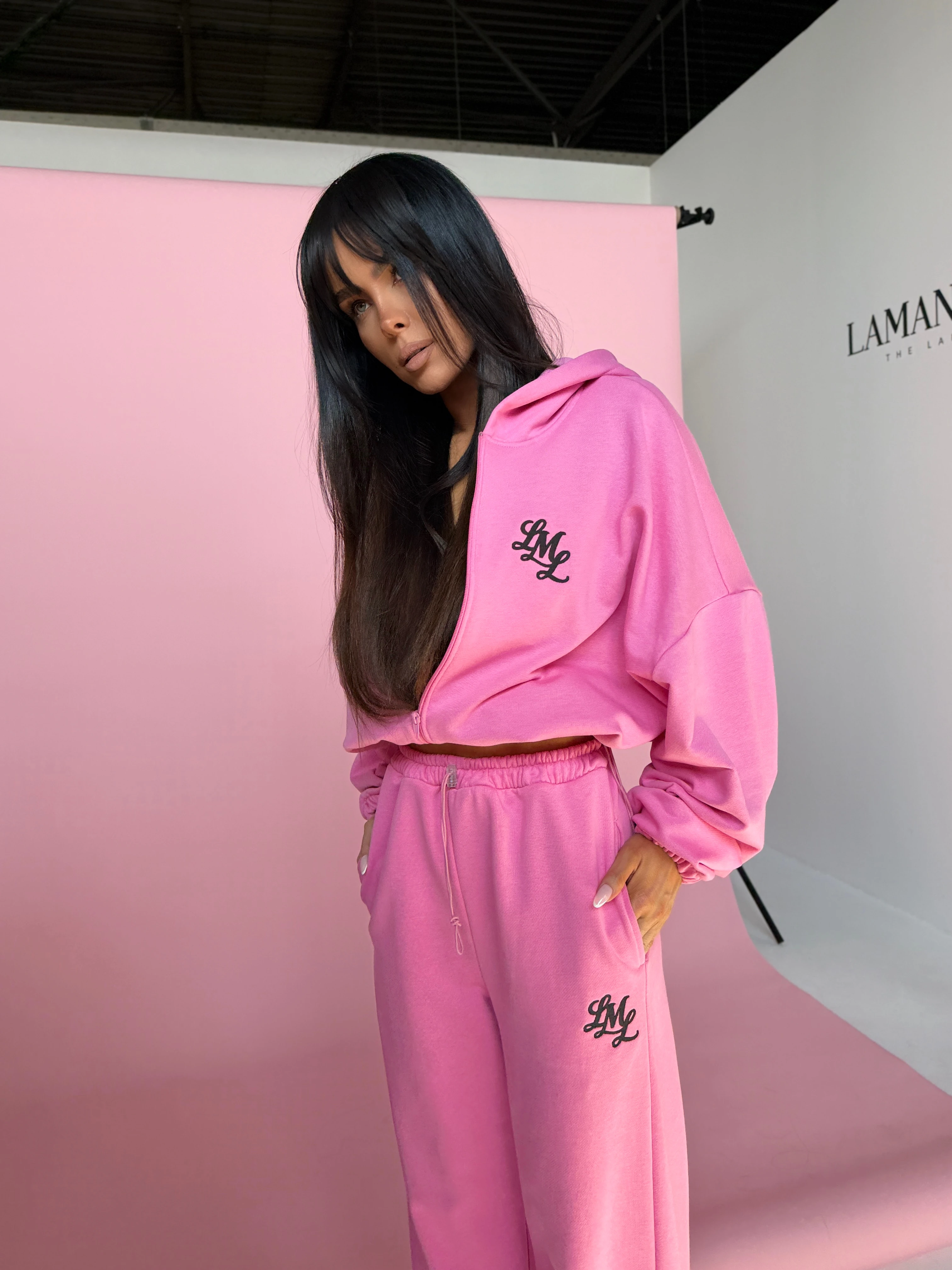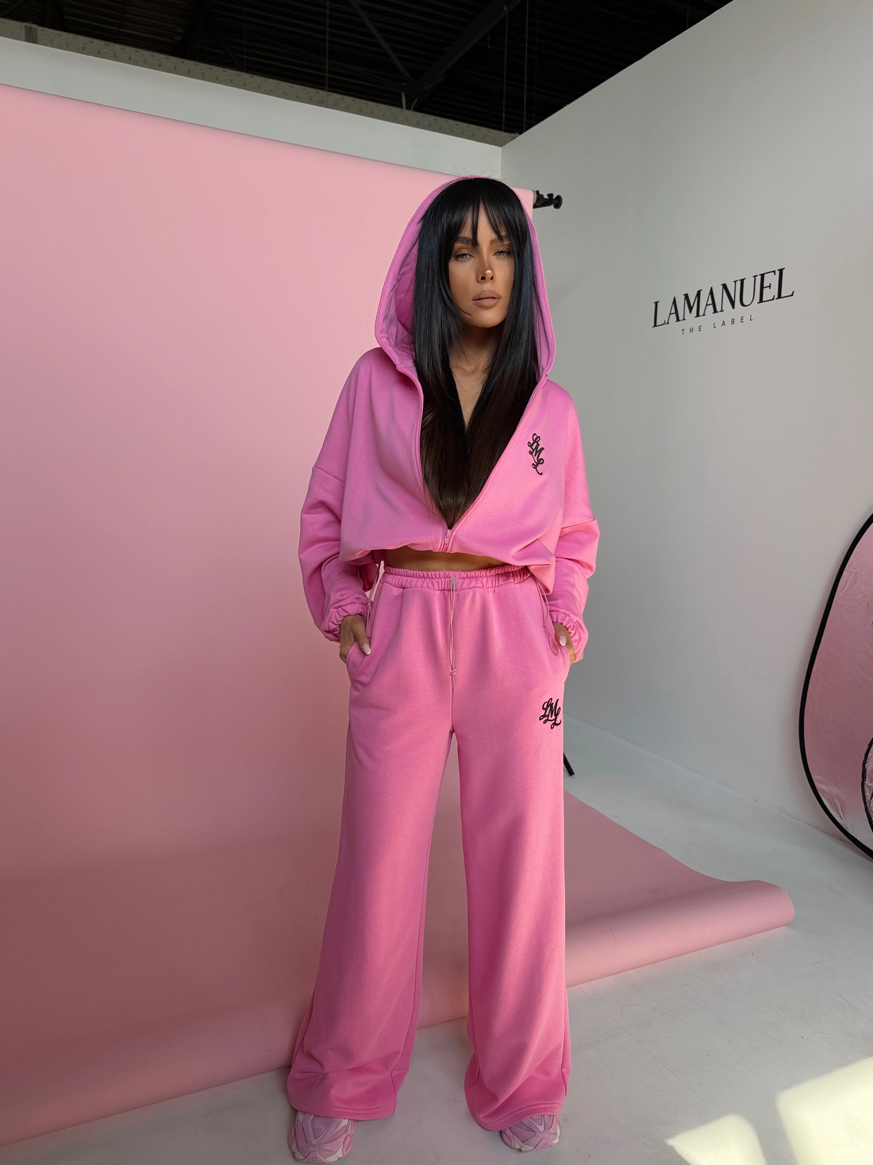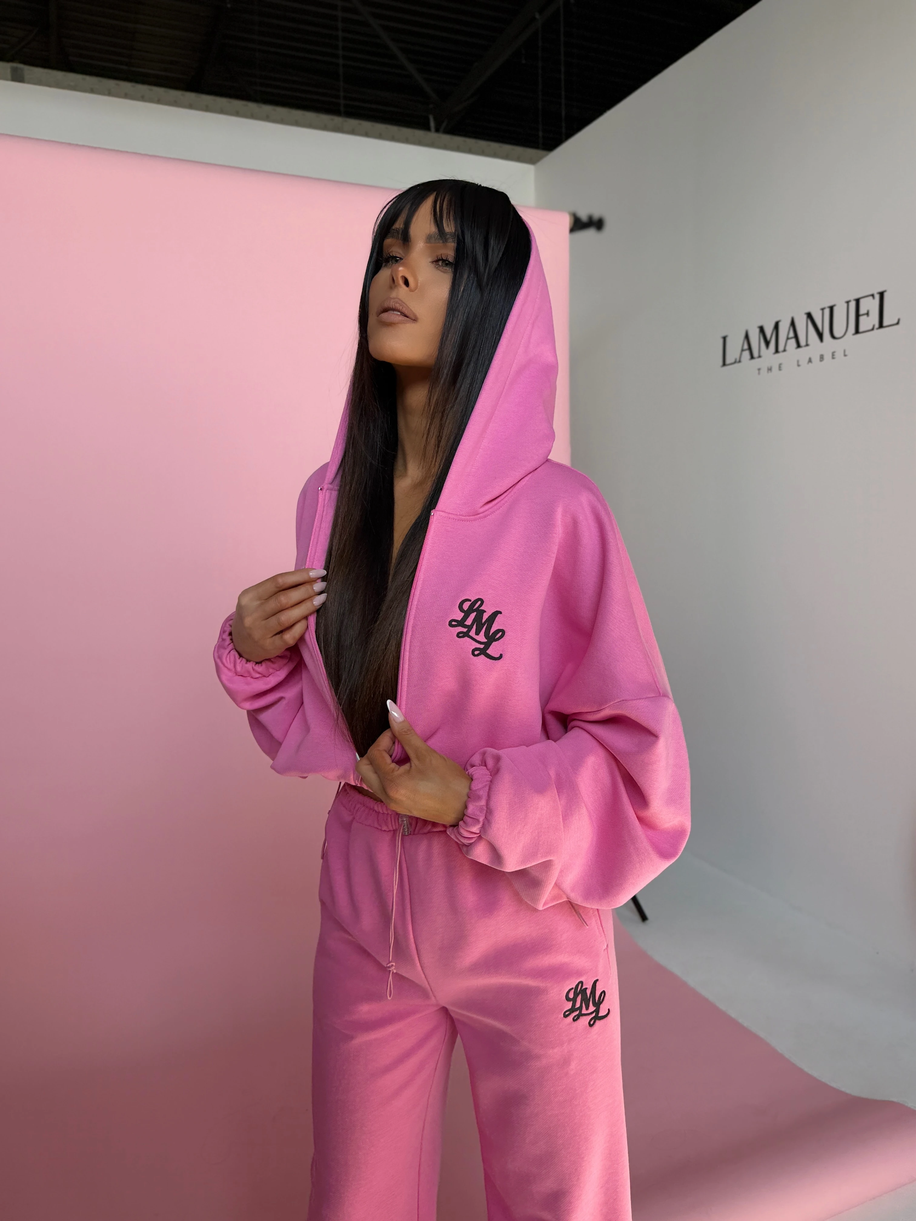 Komplet dresowy o luźnym, oversize’owym kroju. Bluza z kapturem zapinana na zamek, z obniżoną linią ramion i regulacją dołu, która pozwala dopasować fason. Spodnie z szeroką nogawką, gumą w pasie i swobodnym krojem, który dobrze układa się na sylwetce. Na przodzie subtelne haftowane logo, na plecach duży, wyrazisty nadruk. Model tworzy spójny, nowoczesny look idealny do codziennych stylizacji i kompletów.