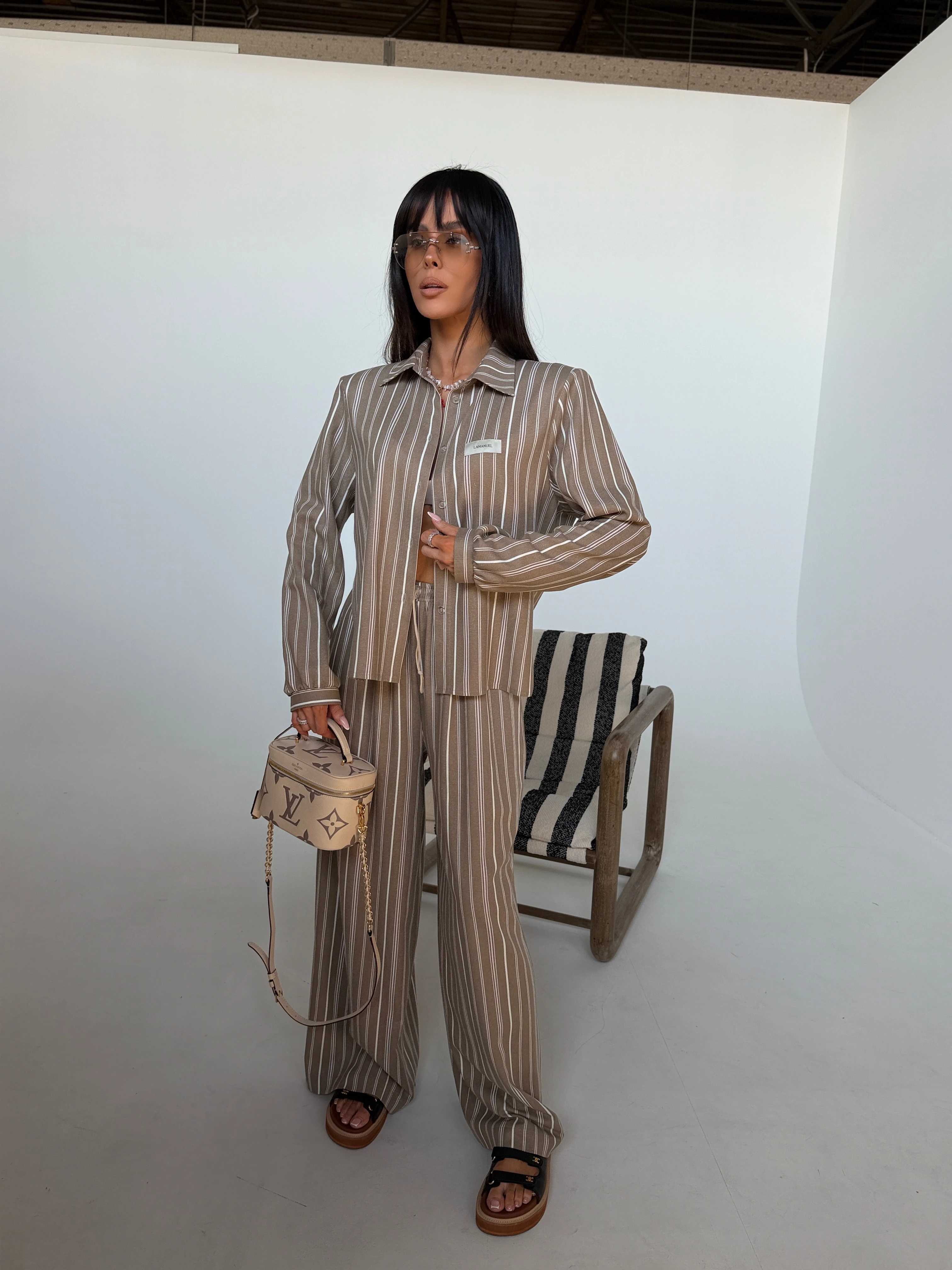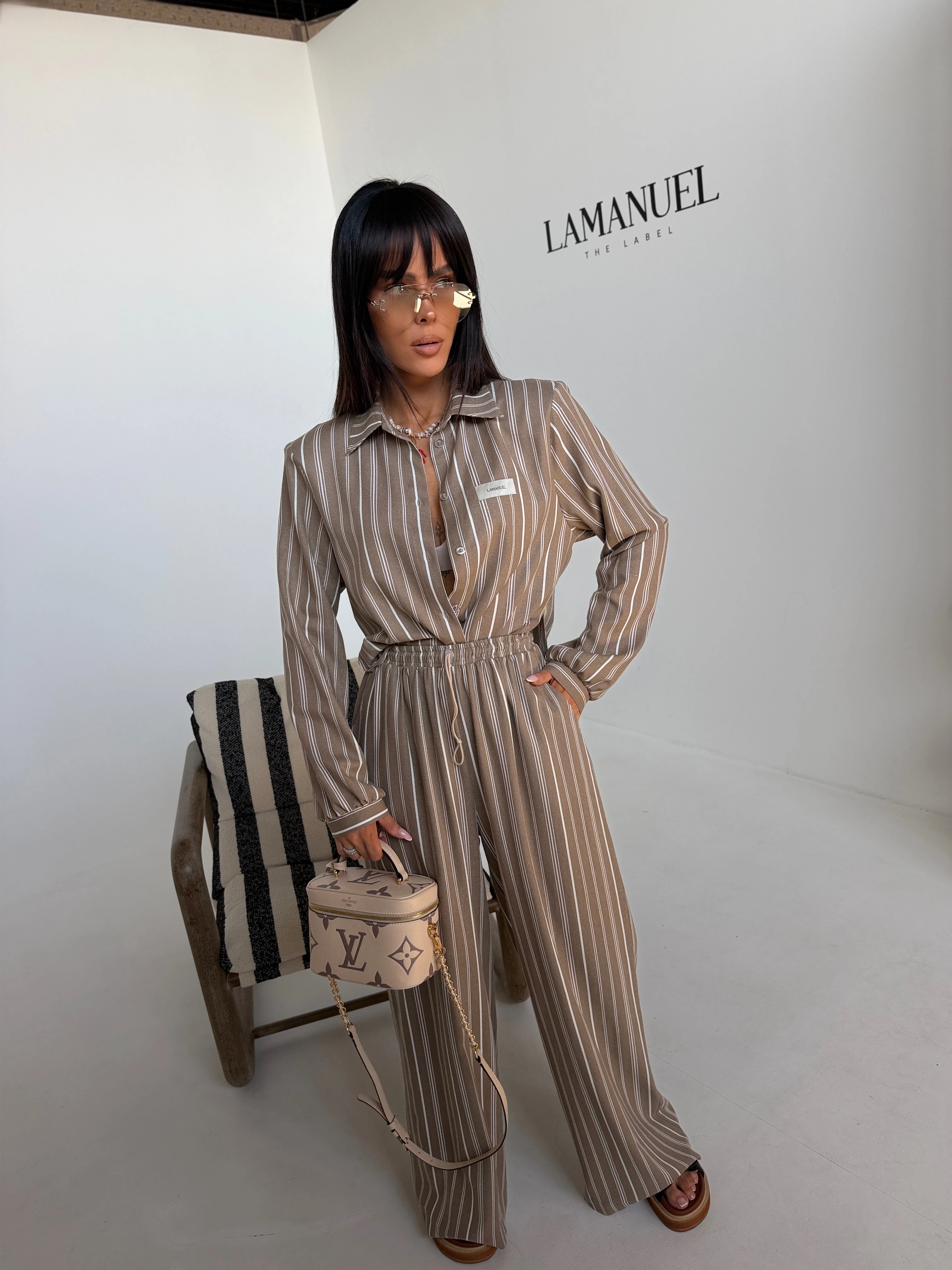 Elegancja w swobodnym wydaniu, która buduje sylwetkę już samą formą. Strukturalna góra z wyraźnie zaznaczoną linią ramion nadaje całości charakteru i pewności siebie. Koszula o dopracowanym kroju idealnie współgra ze spodniami z wysokim stanem, tworząc proporcje, które wydłużają i wysmuklają sylwetkę. Naturalna tkanina na bazie wiskozy, bawełny i lnu zapewnia lekkość oraz komfort noszenia nawet w cieplejsze dni. Subtelny wzór w pionowe pasy dodaje elegancji, a jednocześnie zachowuje nowoczesny, niewymuszony styl. Komplet, który sprawdzi się zarówno w codziennym ruchu, jak i w bardziej dopracowanych stylizacjach. Skład: 60% wiskoza 25% bawełna 15% len