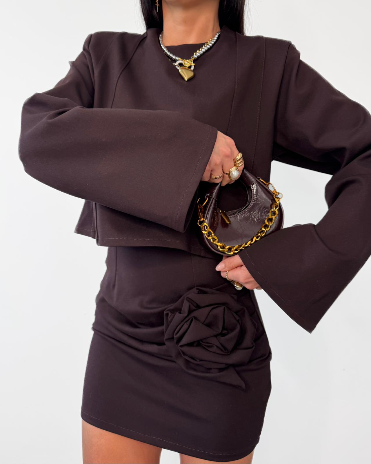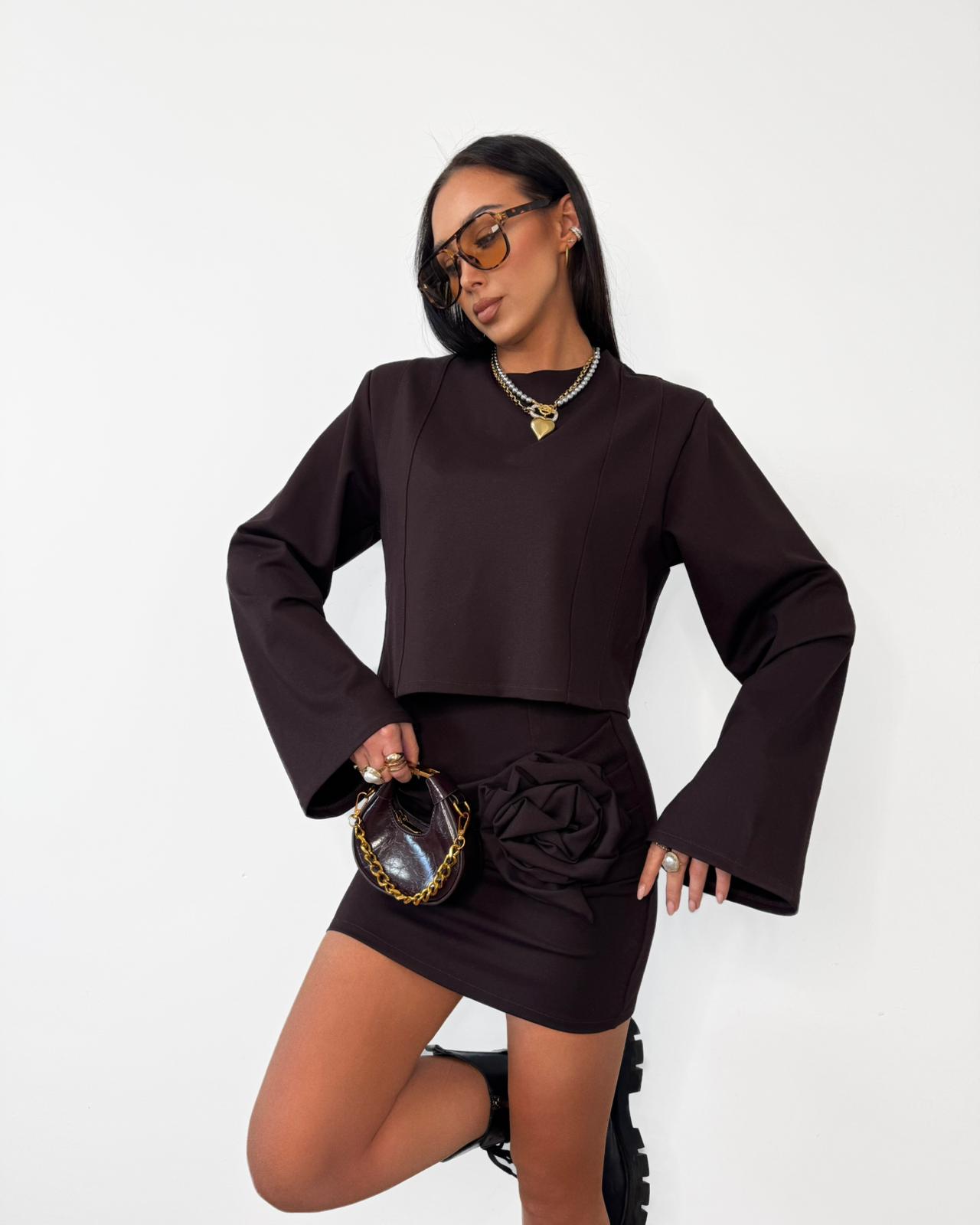 Komplet bluzka + Spodnica z Kwiatem Czekolada