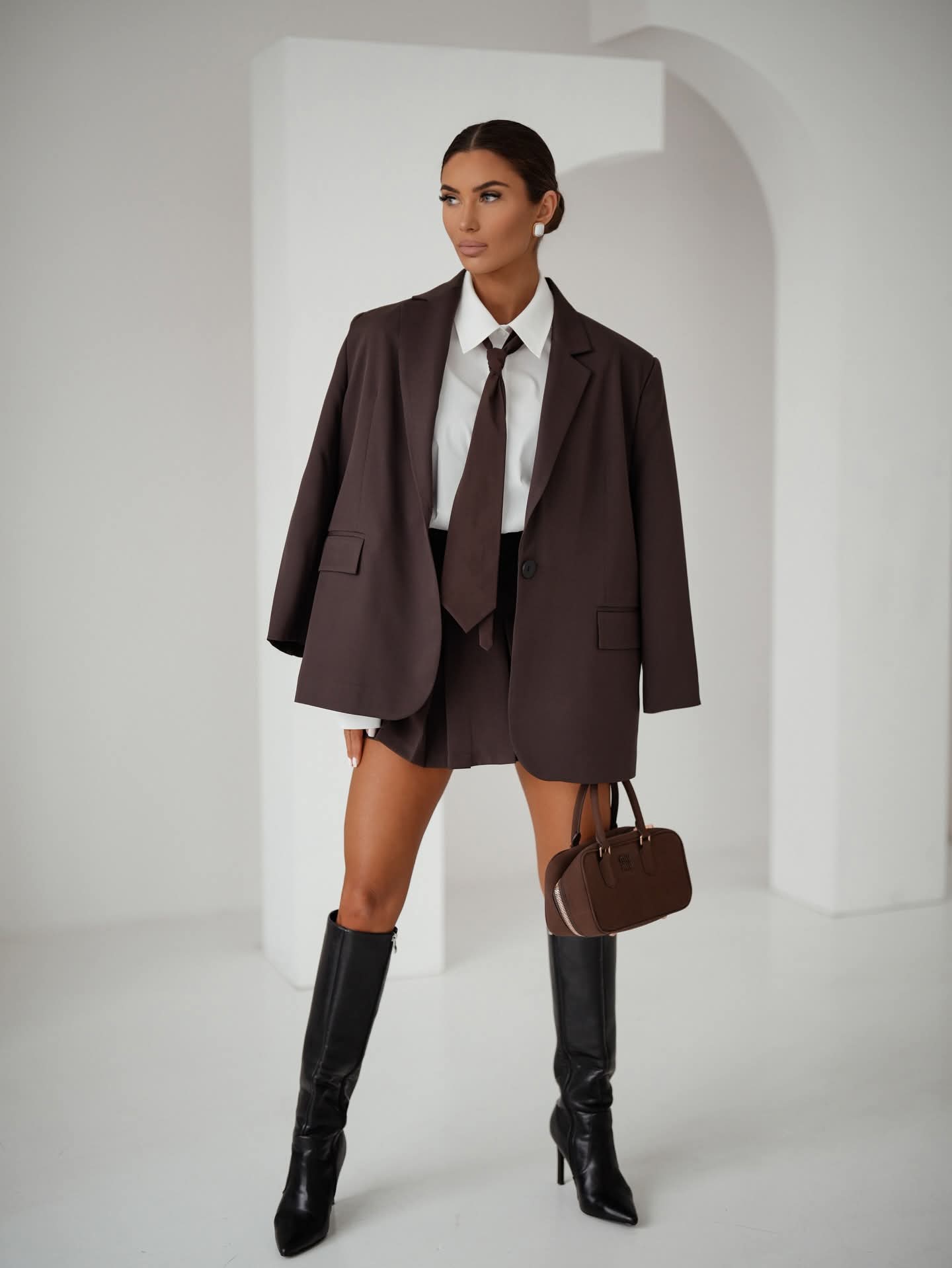Marynarka Oversize Wiskozowa Czekoladowa Gabella