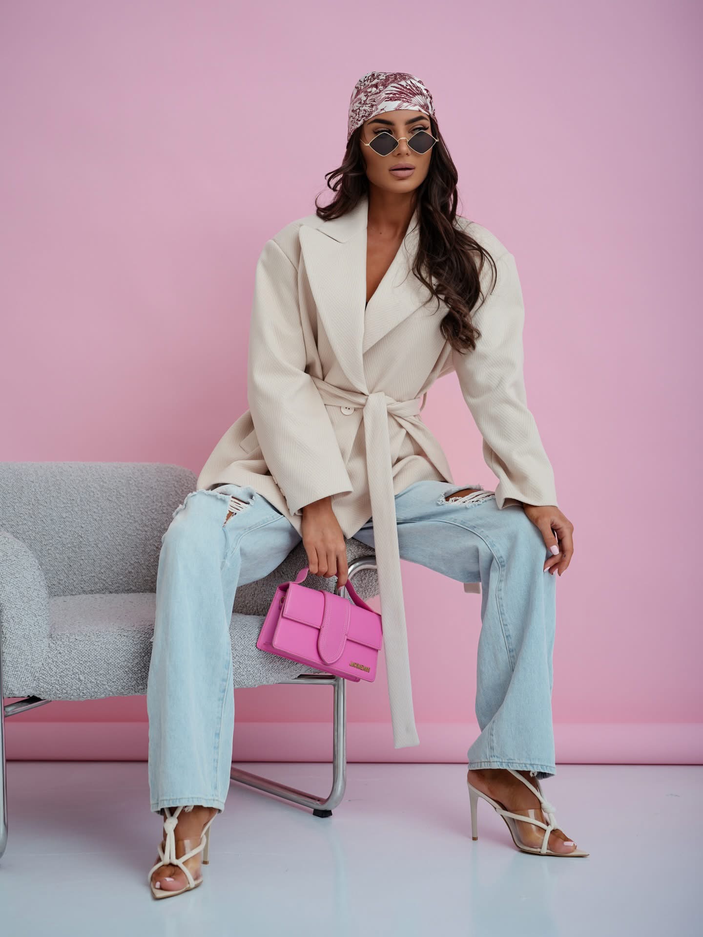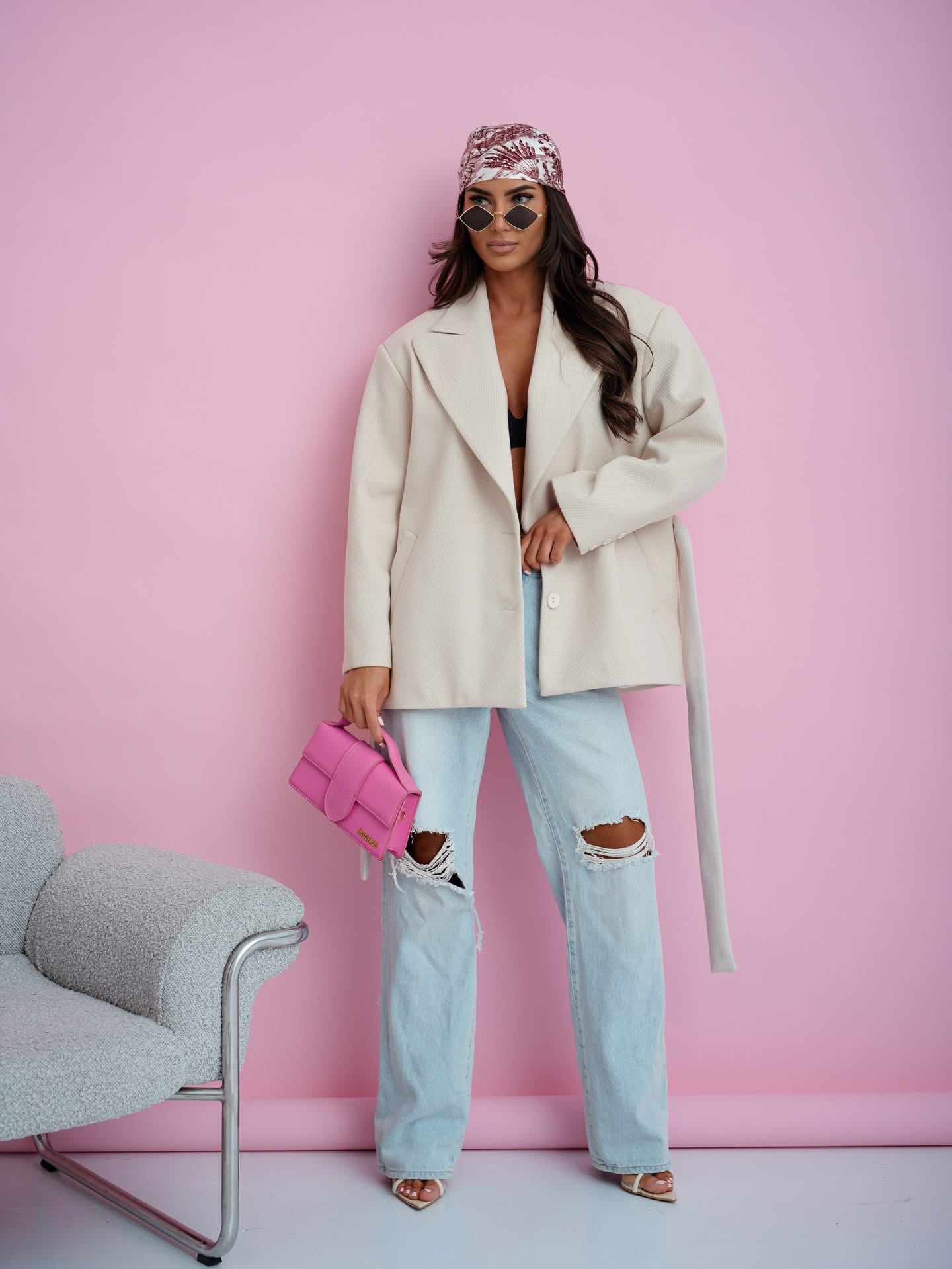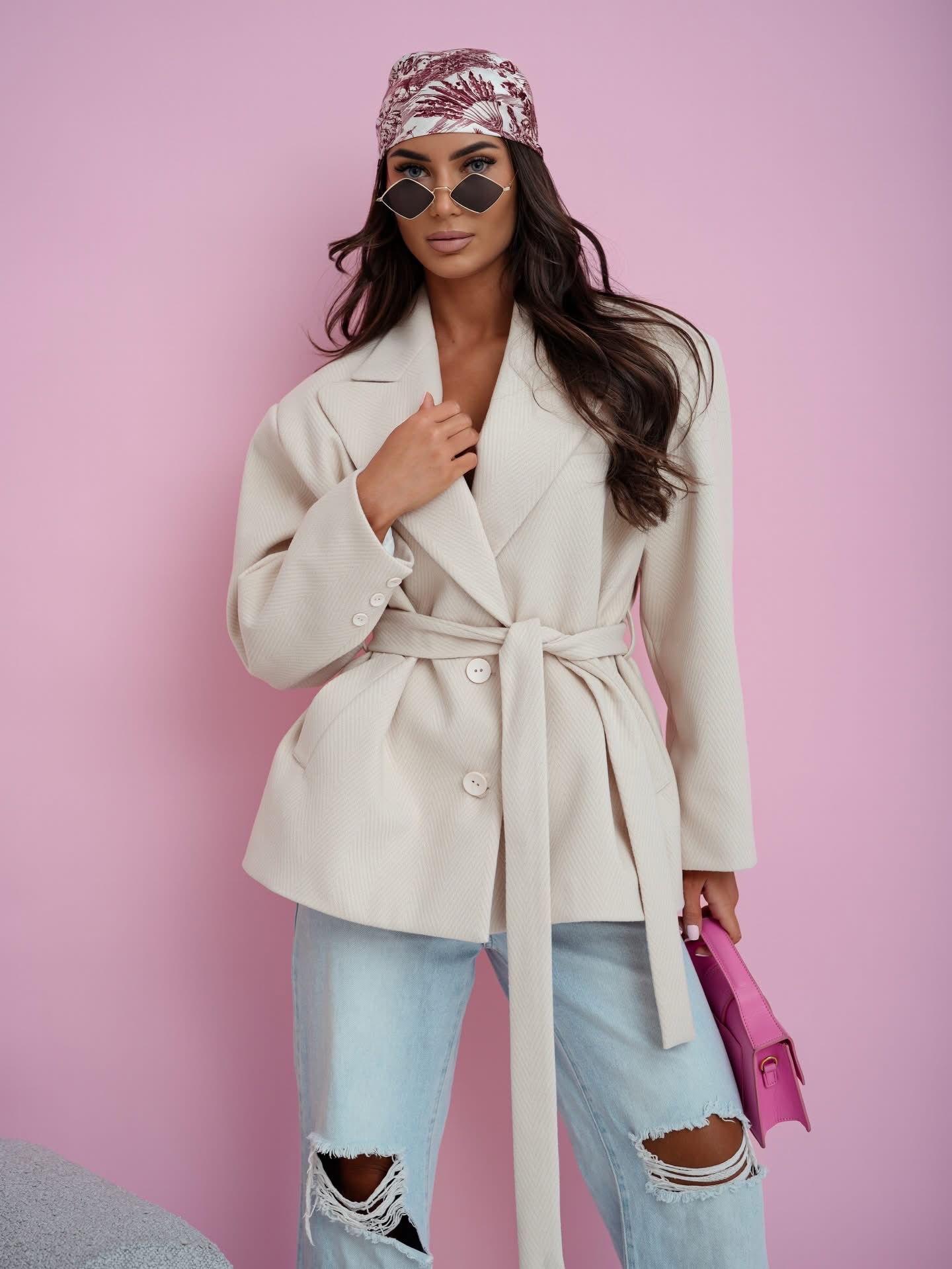 Marynarka Oversize w jodełkę Amelia Jasny Beż