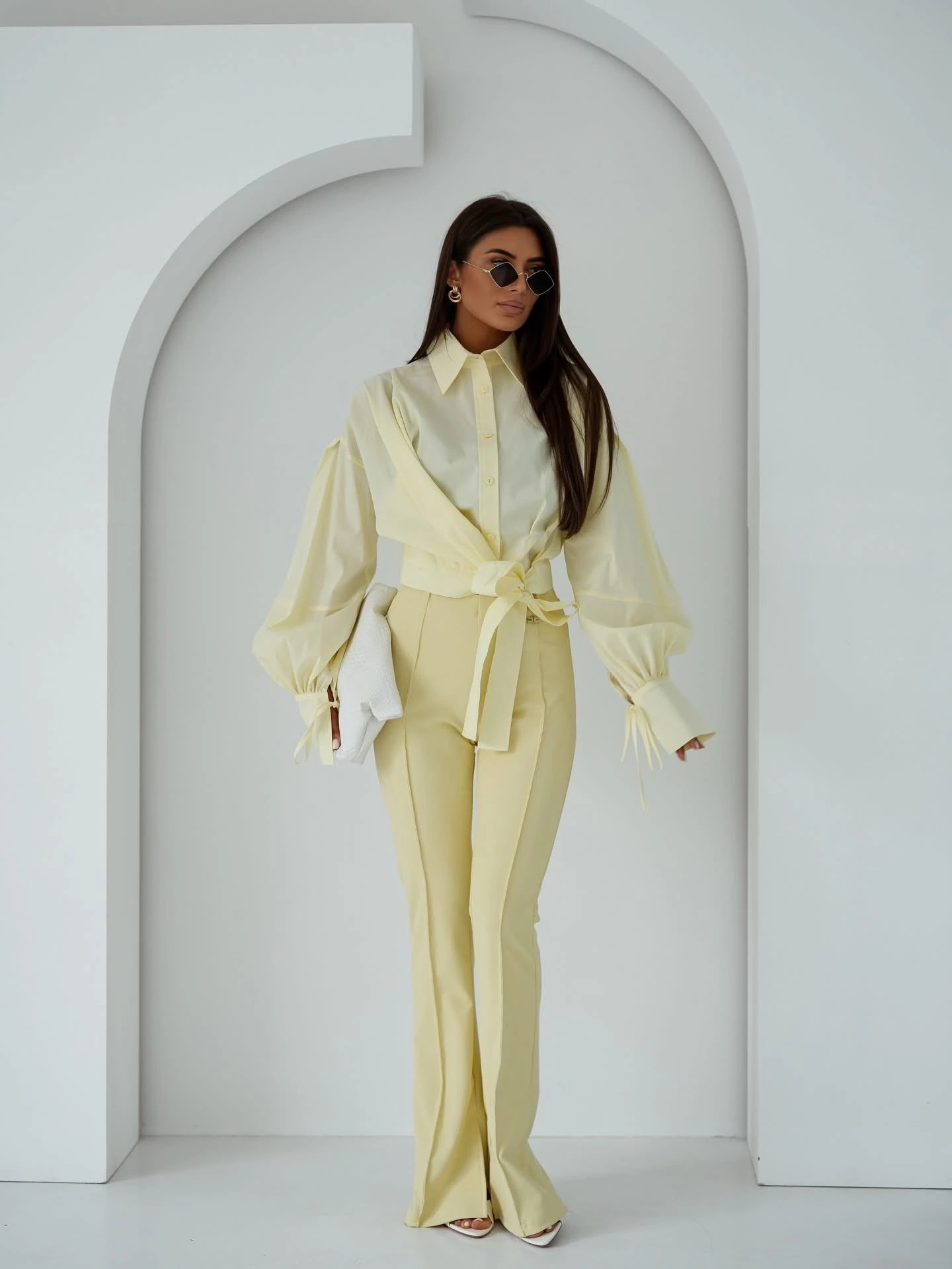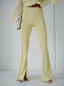 Spodnie dzianinowe Elisabeth prążek Żółte