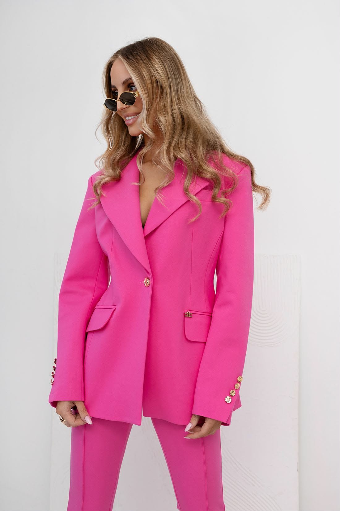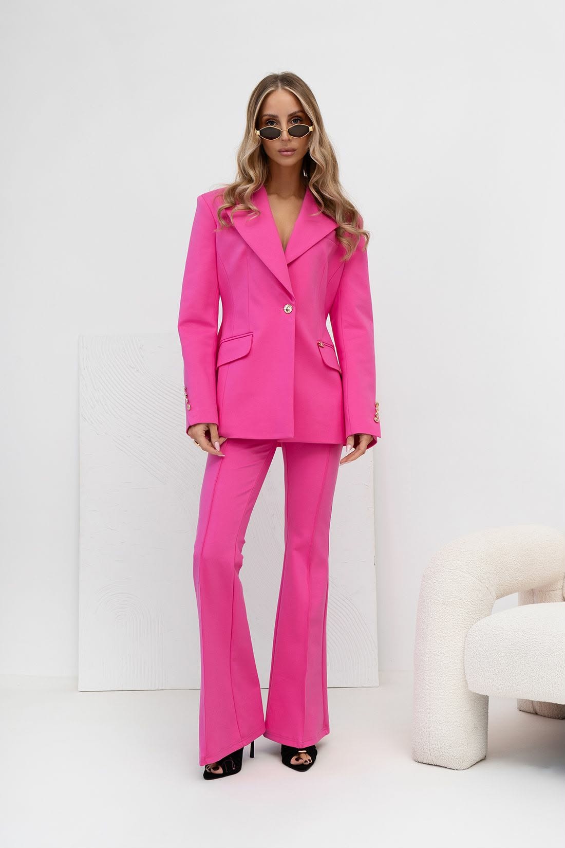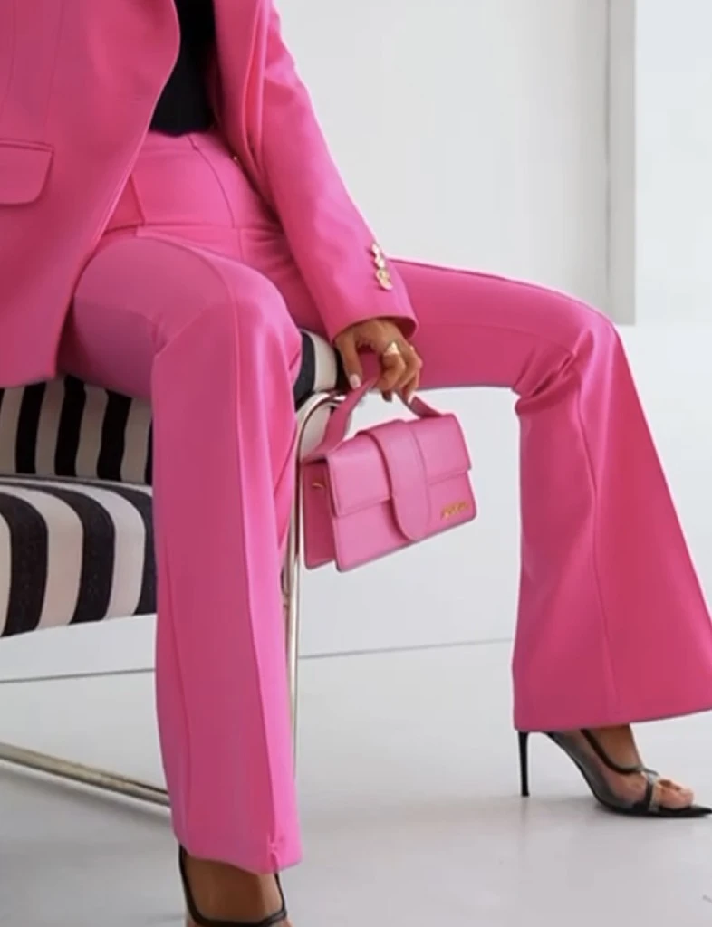Spodnie dzwony w kant eleganckie różowe Helene