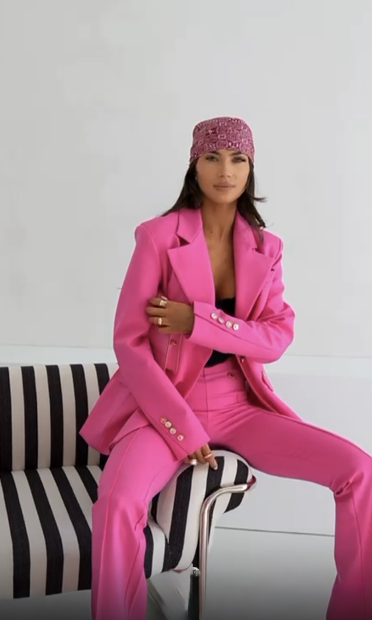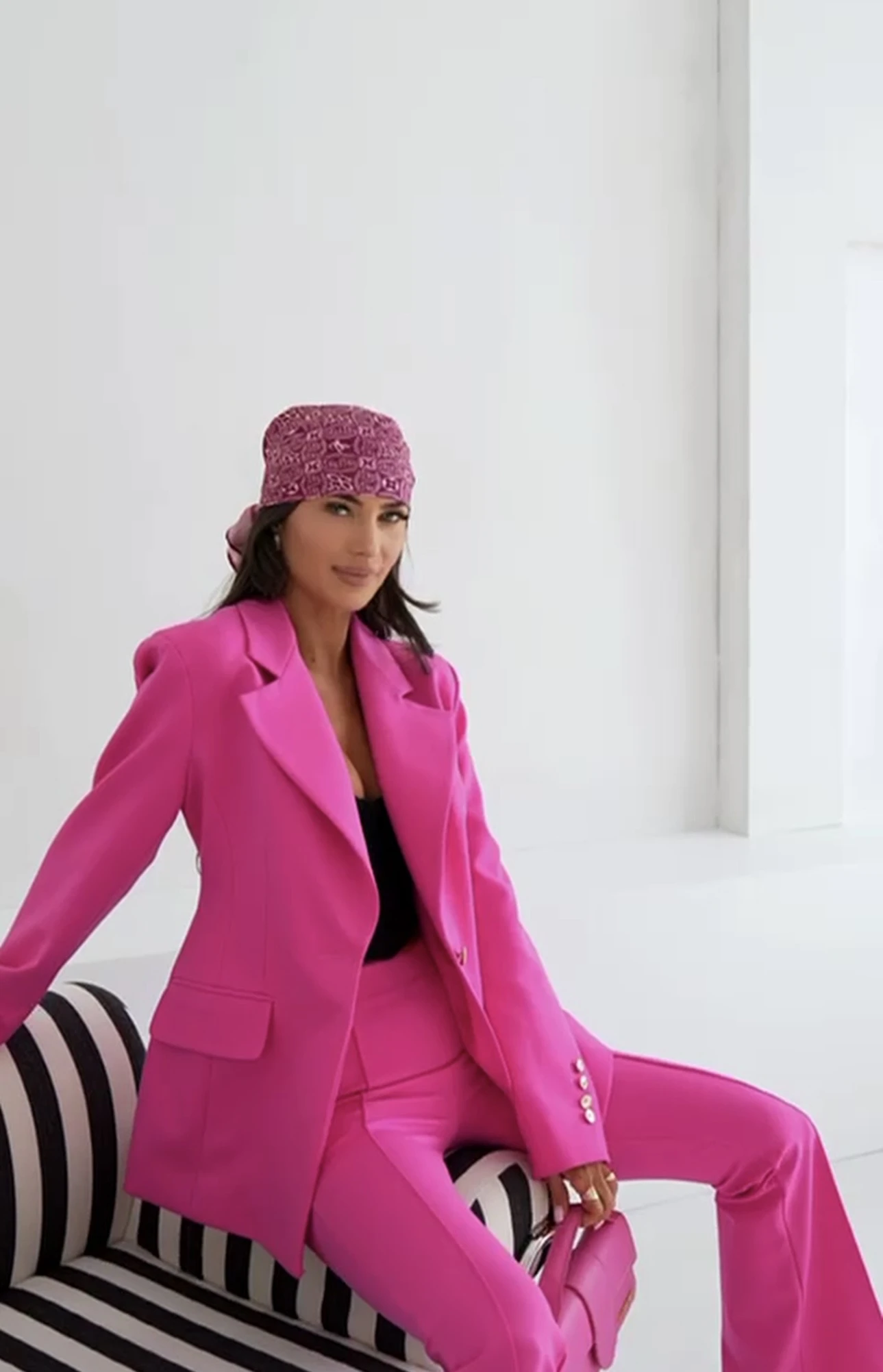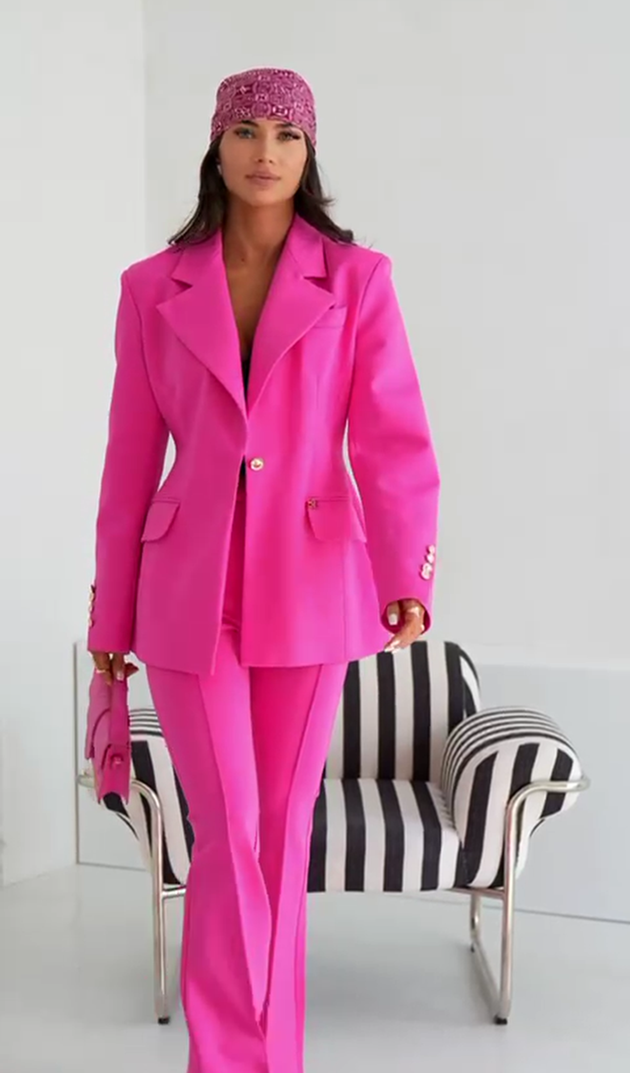 Spodnie dzwony w kant eleganckie różowe Helene