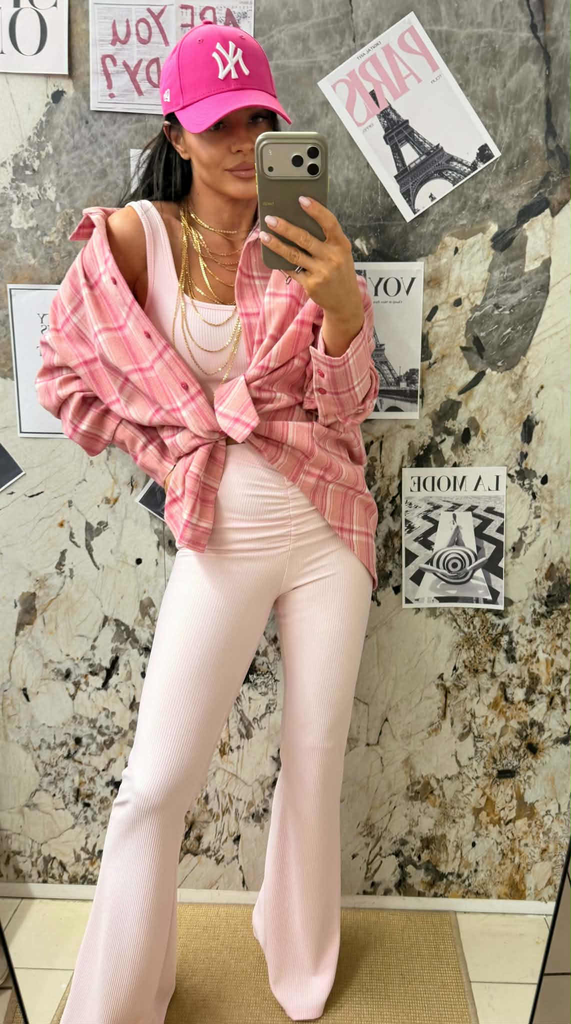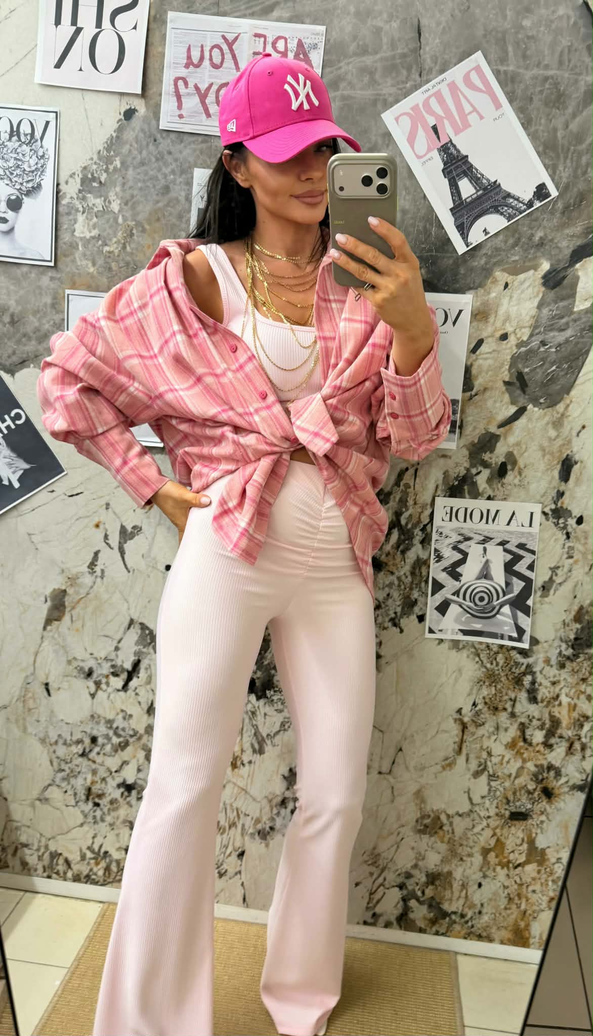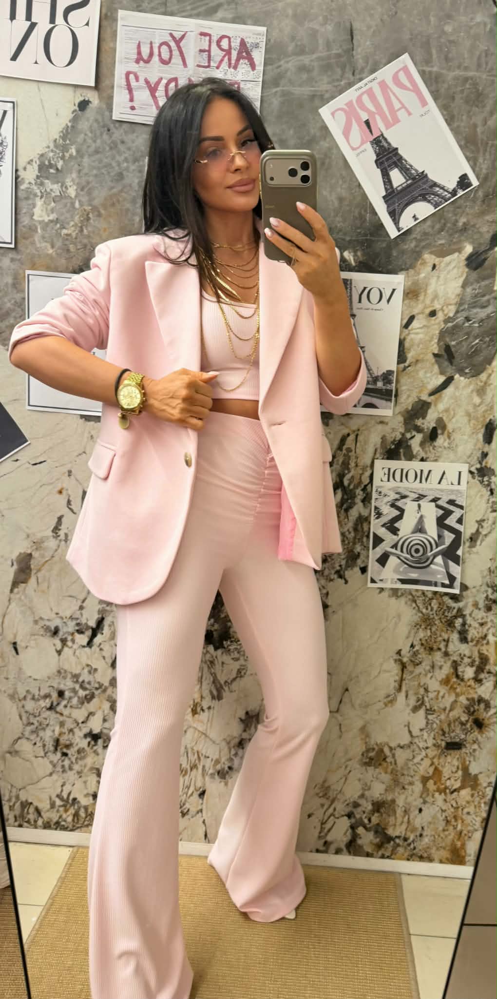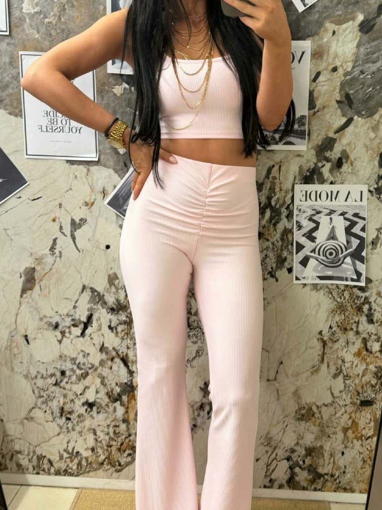 Spodnie dzwony z marczczeniem Jasny Róż Roko