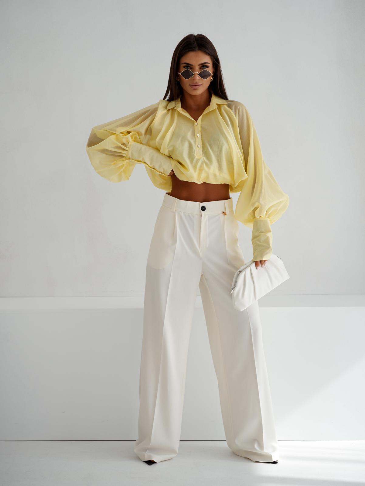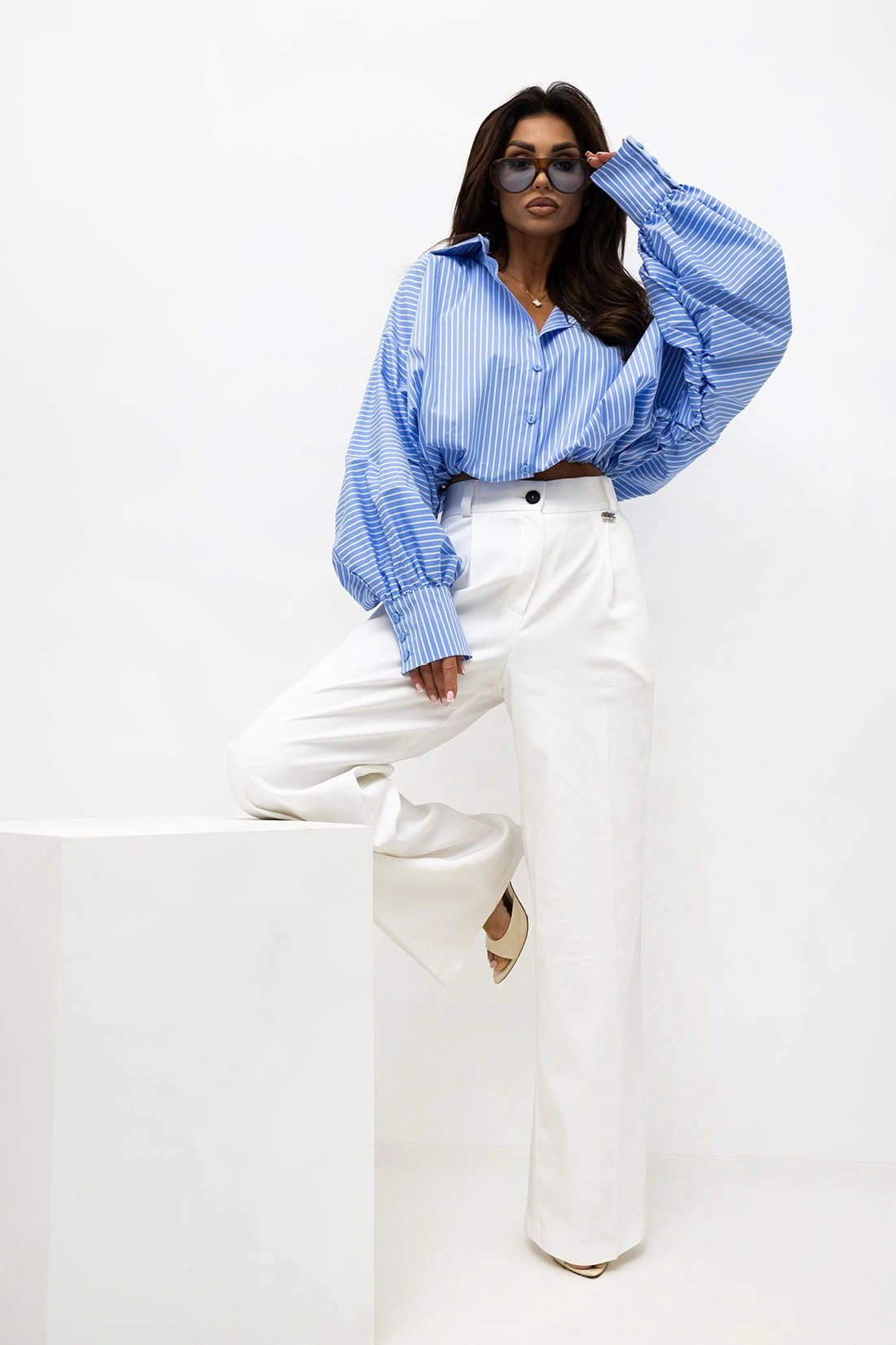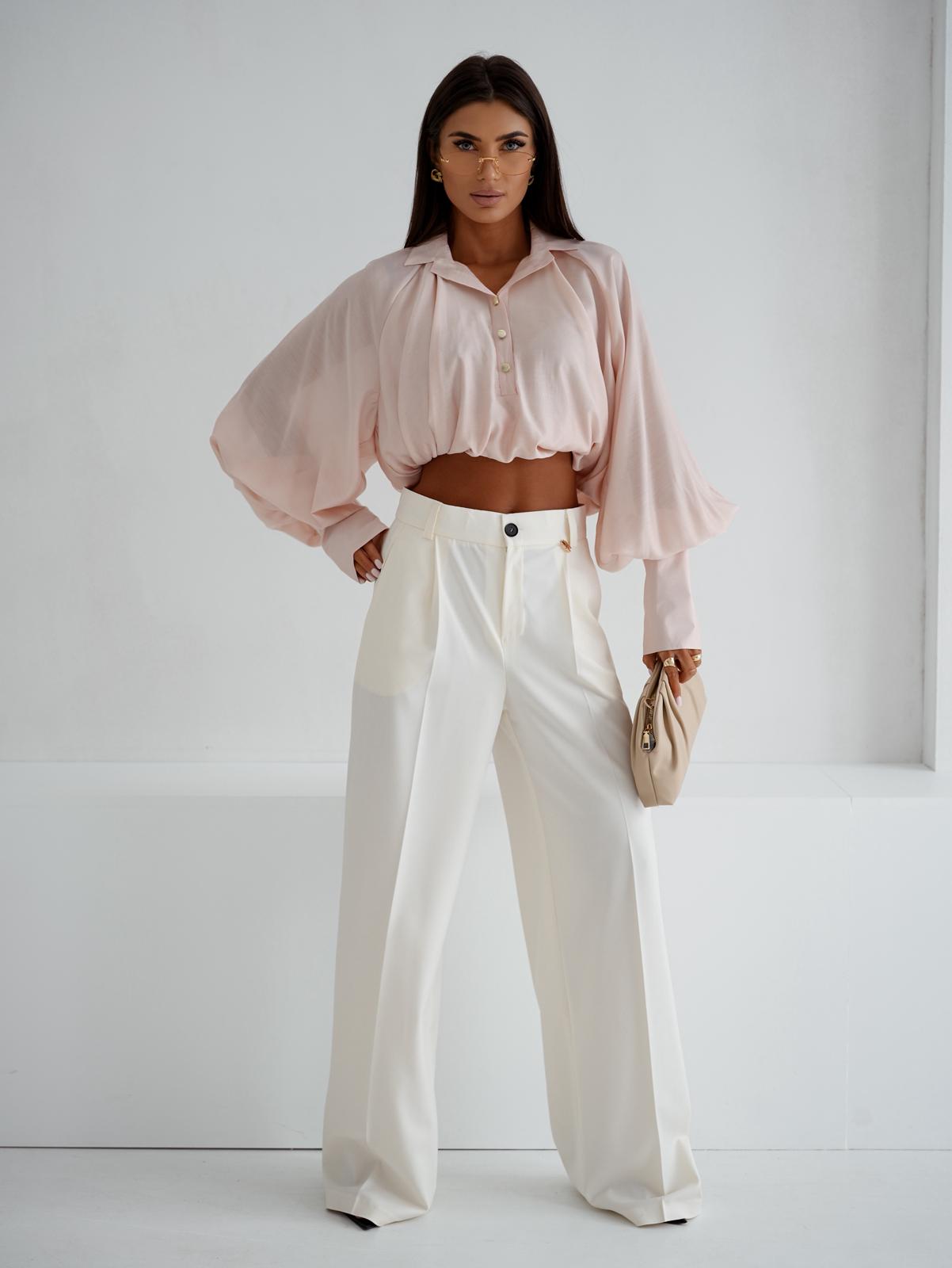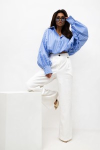 odnie polskiej firmy o szerokich, prostych nogawkach w kant i wysokim stanie, uszyte z fantastycznego eleganckiego materiału.