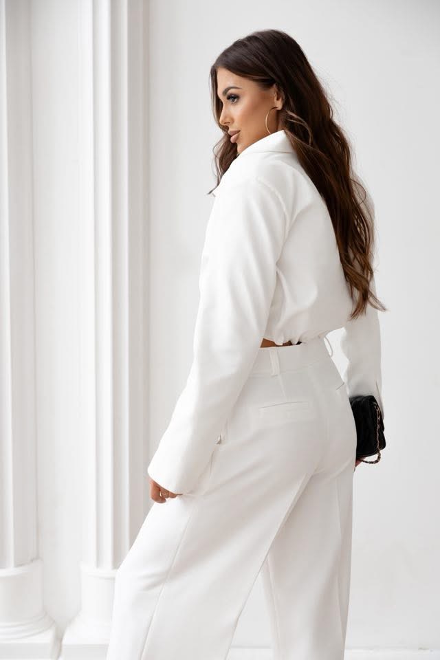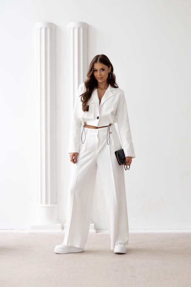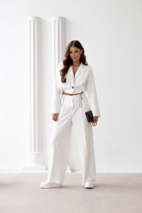 Spodnie klasyczne z prostą nogawką białe Omena