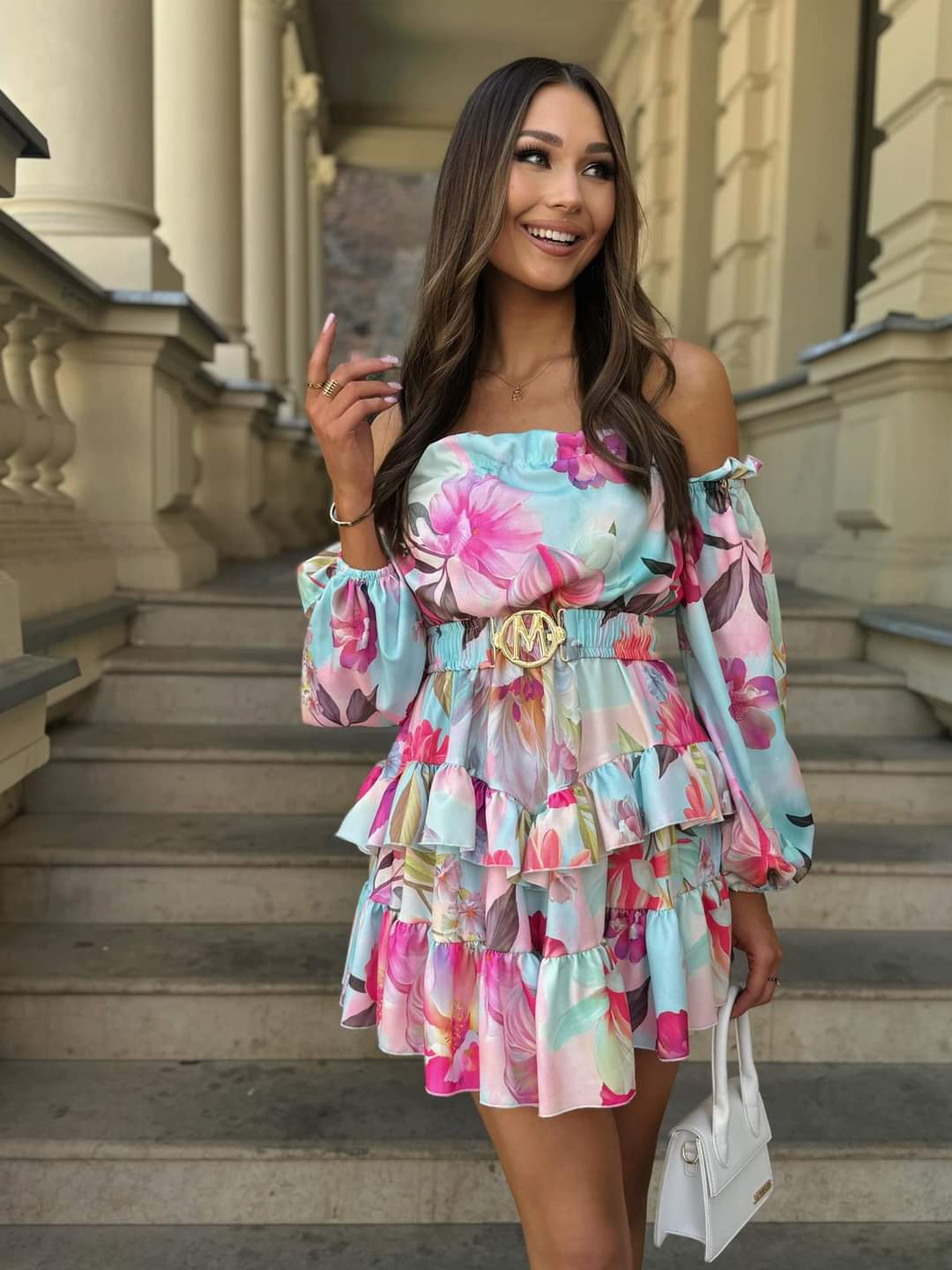 Sliczna, lekkia sukienka hiszpanka wzbogaci Twoją garderobę. Świetnie komponuje się ze szpilkami. Szykowny, i zarazem bardzo kobiecy fason.Idealna baza do wielu stylizacji. Poczujesz się w nim wyjątkowo. hiszpanka rękawy dobrej jakości materiał uniwersalny pasek w zestawie kobiecy modny