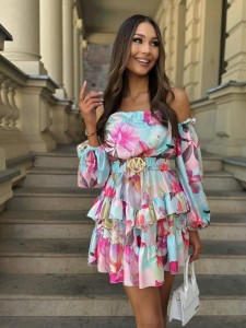 Sukienka Hiszpanka print kwiatowy Różowo - Błękitna Marika