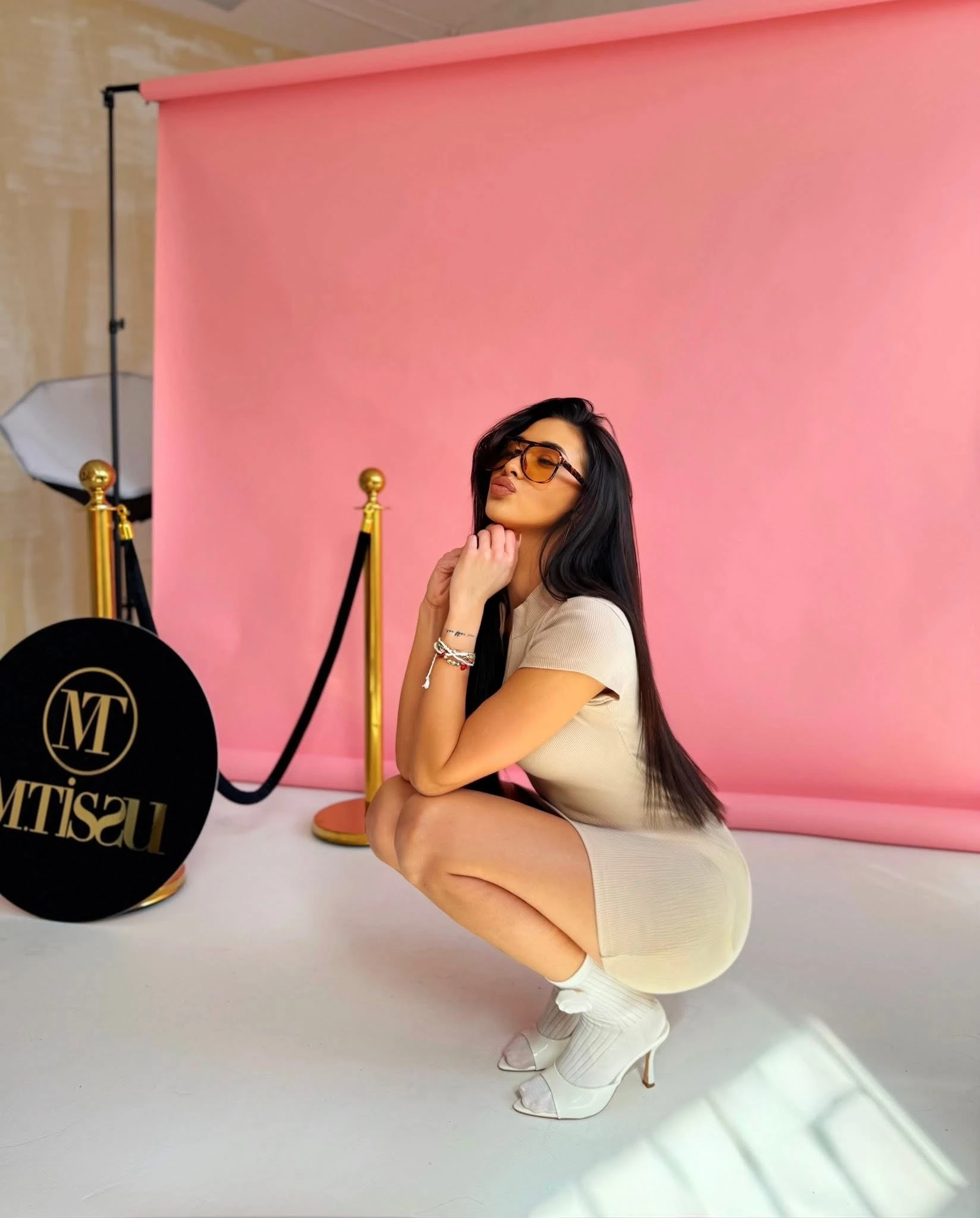 Sukienka Logo Prążek Tissu beż